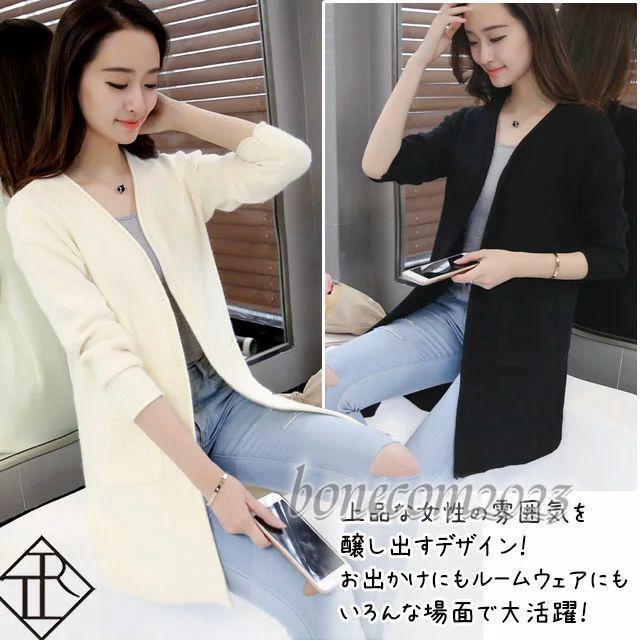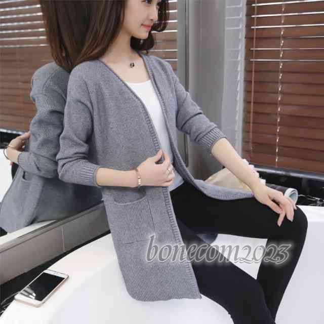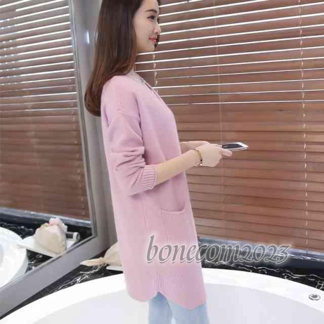 ニット カーディガン ニットコート カーデ ミディアム丈 厚手 ゆったり 体型カバー 長袖 コーディガン 秋冬 トップス 前開き アウター Vネック シンプル カジュ