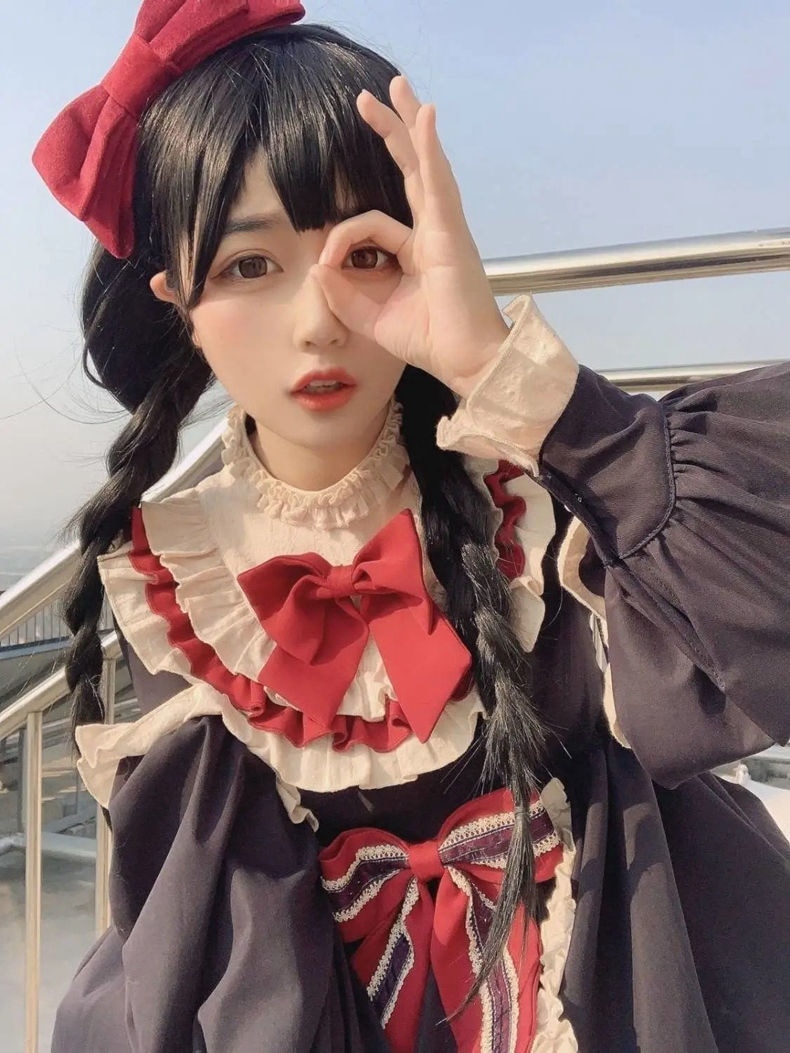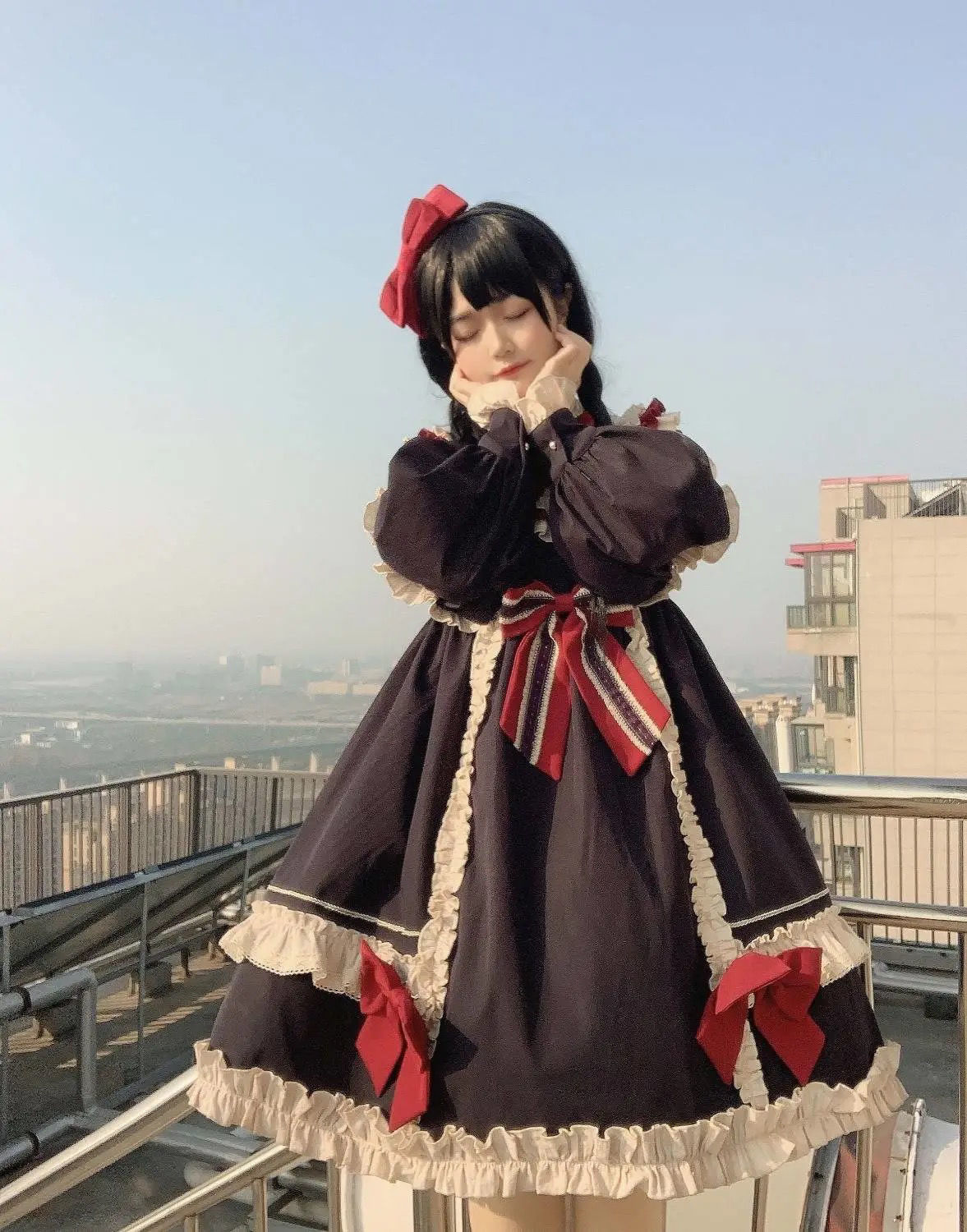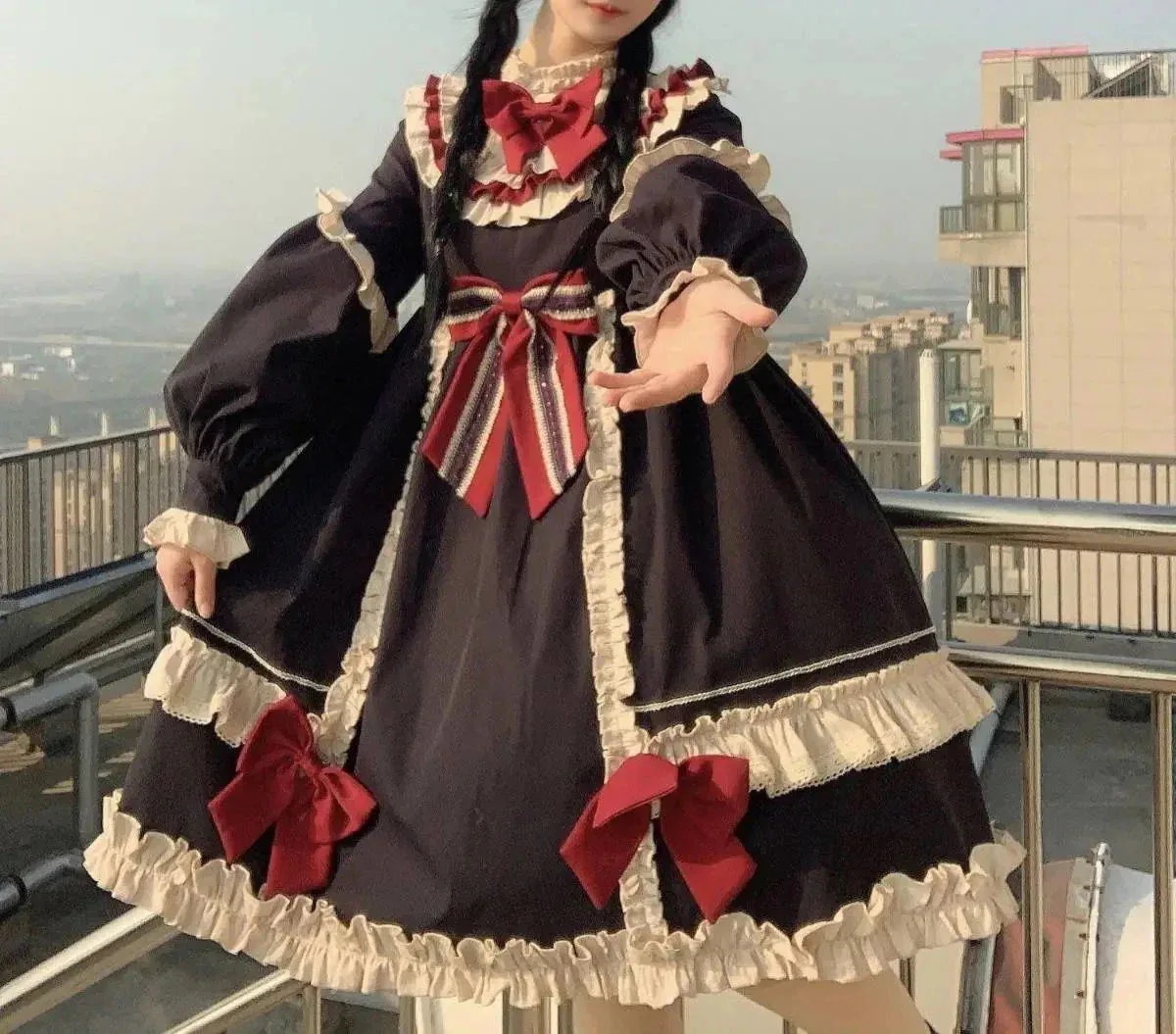 ロリータゴスロリメイド服洋装コスプレ 二次元 ロリータ ドレス スカート白雪姫 少女長袖op かわいい ワンピース コスプレ ワンピース ロリータワンピース