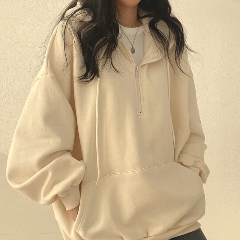 韓国ファッション パーカー レディース ハーフジップ パーカー 無地 韓国 ファッション oversize ゆったり秋コーデ チャック付き カジュアル長袖スウェッ