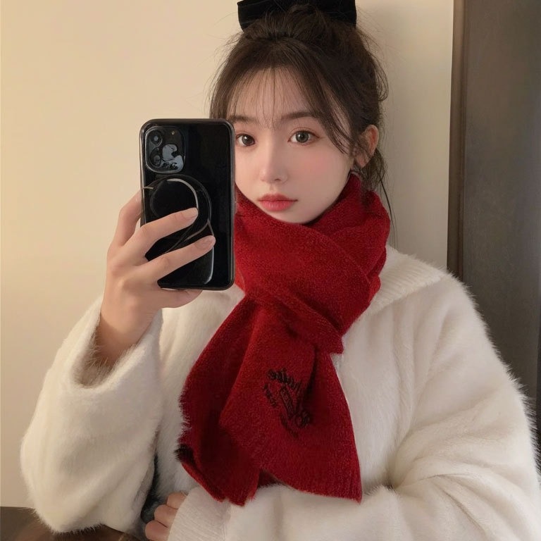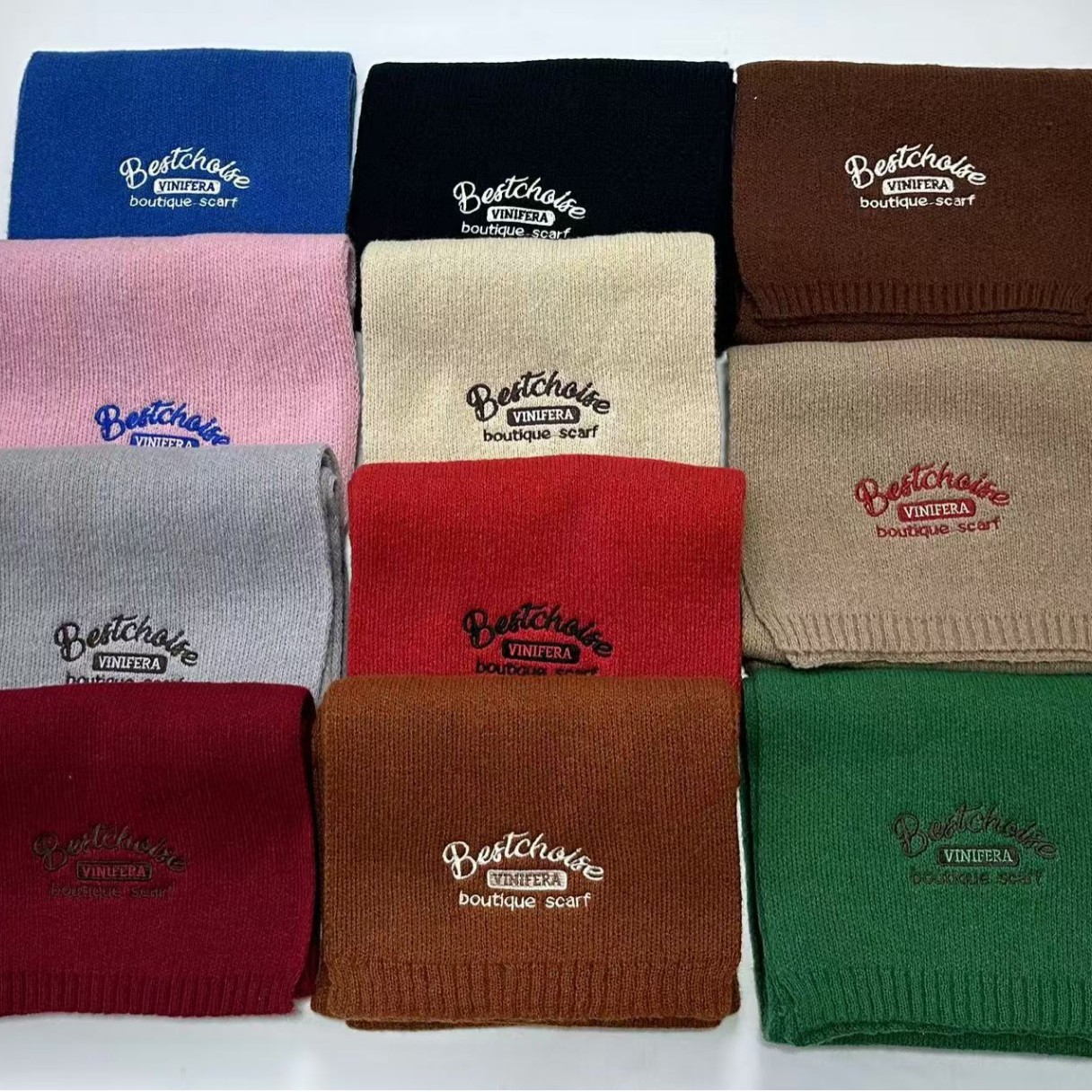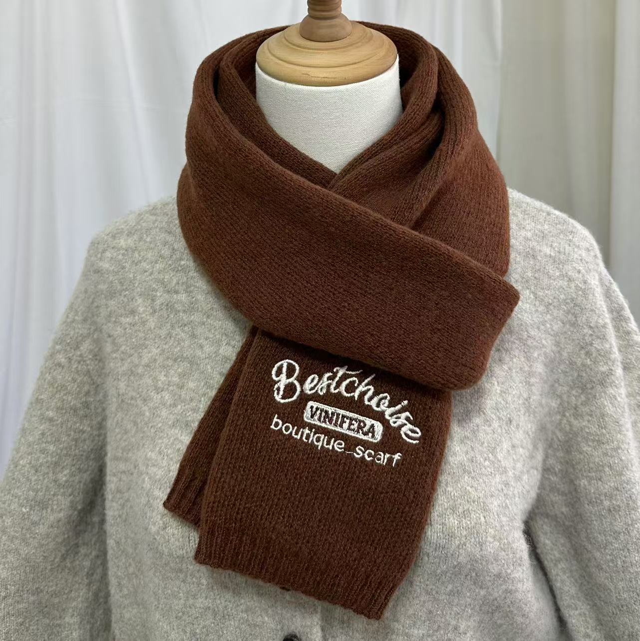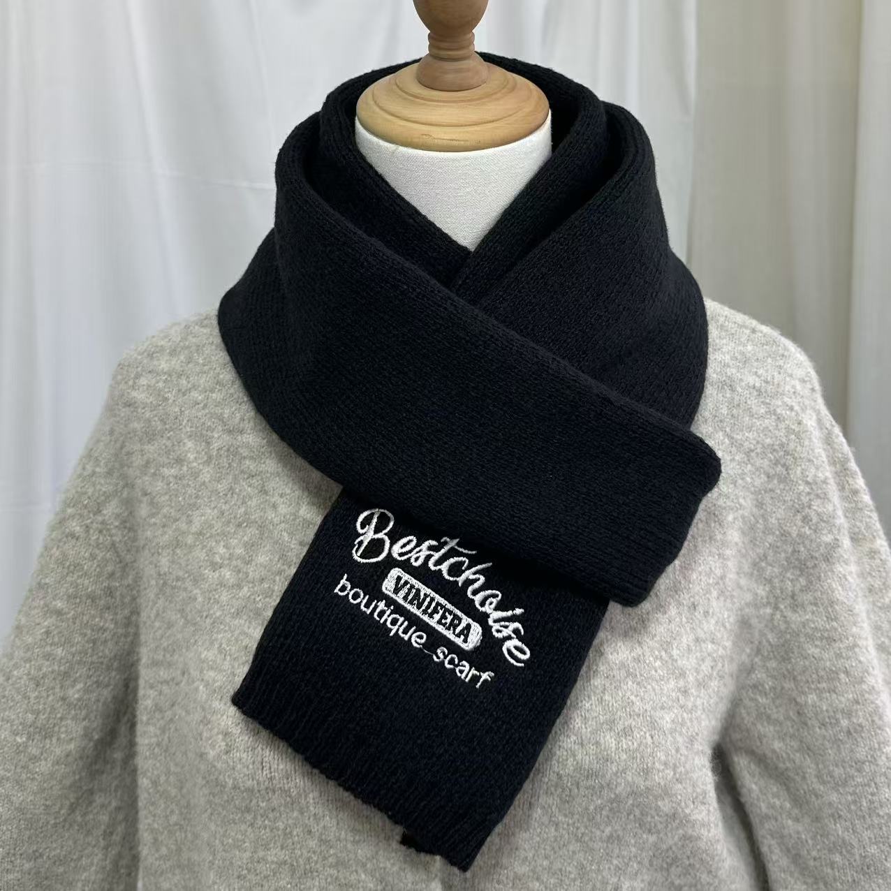 マフラー 刺繍スカーフの女性の冬の学生の暖かいカップルの純粋な色のシニア感覚の韓国語版の2024モデルは小さなスカーフを編んだ スヌード
