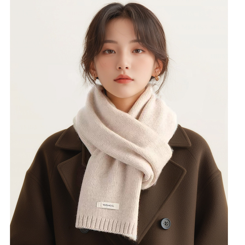 マフラー シンプルなニットマフラー冬のカップルモデルの韓国語バージョンソフト暖かいソリッドカラースカーフ男性と女性 スヌード