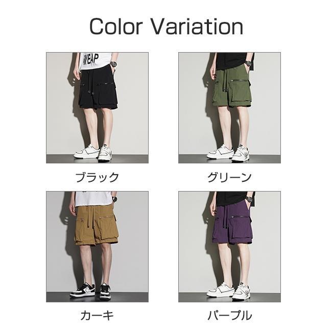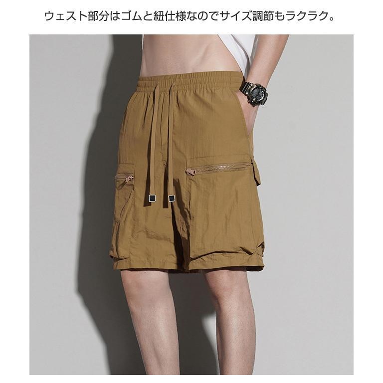 膝丈 ミリタリー ウエストゴム ショートパンツ 速乾 ワーク 接触冷感 カーゴパンツ 短パン リラックス おしゃれ 大きいサイズ 五分丈 薄手 ハーフパンツ メンズ