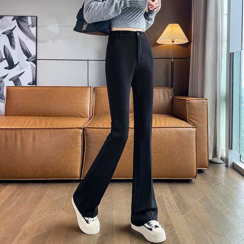 ズボン黒ブーツカットパンツ2024新スタイルハイウエストスリムドレープカジュアルパンツフレアスーツフロアレングスパンツ ロングパンツ