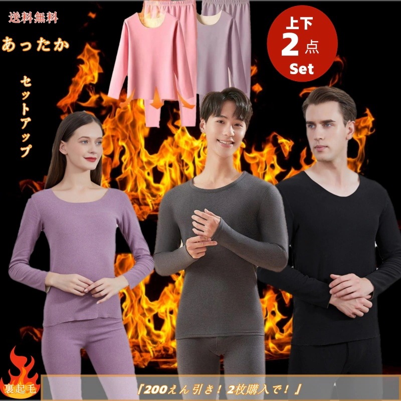 2点セットメンズファッション レディースパジャマ 保温 インナー レディース 肌着 ルームウエア 長袖 伸縮性高 ヒートテック 暖かい パンツ 少し裏