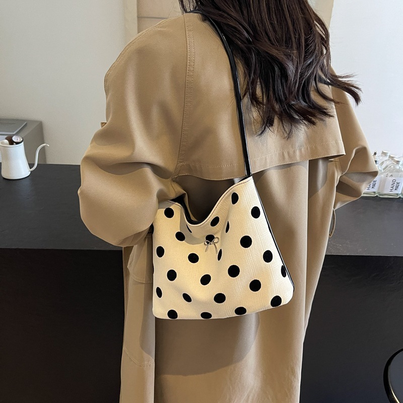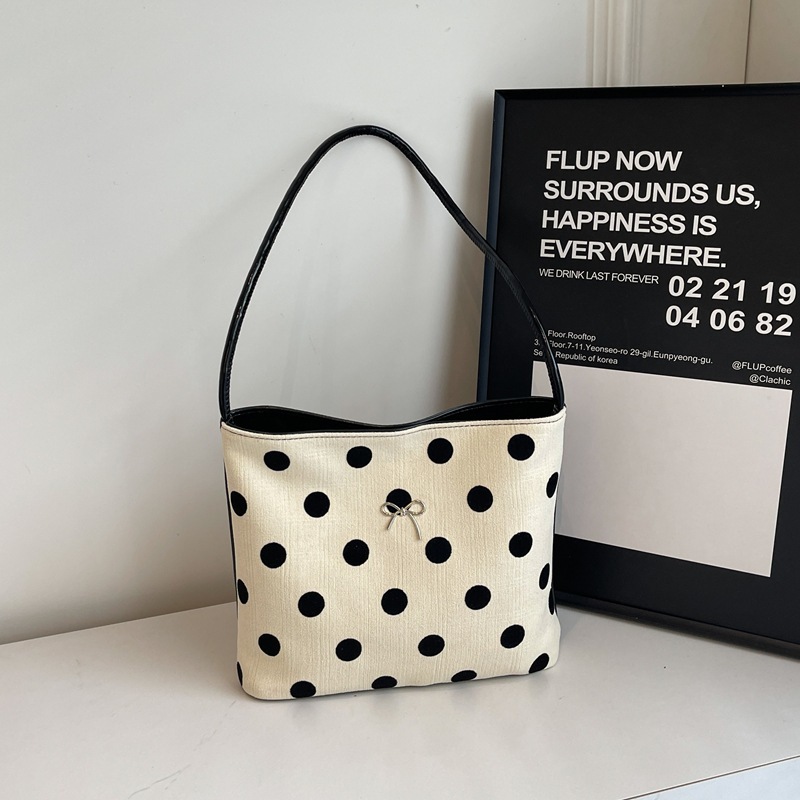 小衆波点帆布バケツ小包女2024新百合片肩腋の下包外出小包 ハンドバッグ