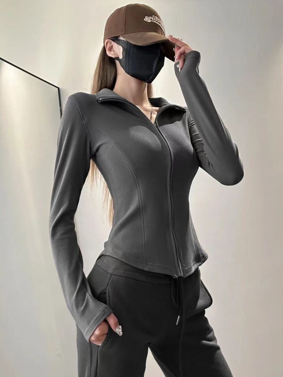 リバーシブルのダウンに厚手の保温スタンドカラーのパーカーTシャツ女性冬ギャルフィットインナージッパーボトムトップス Tシャツ カットソー