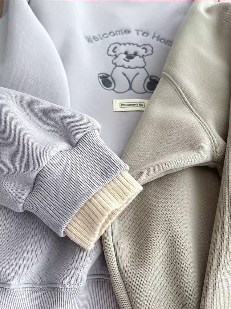 秋冬の新爆金小柄ダウンに厚手の子グマ刺繍柄偽2枚の丸首衛衣女 Tシャツ カットソー