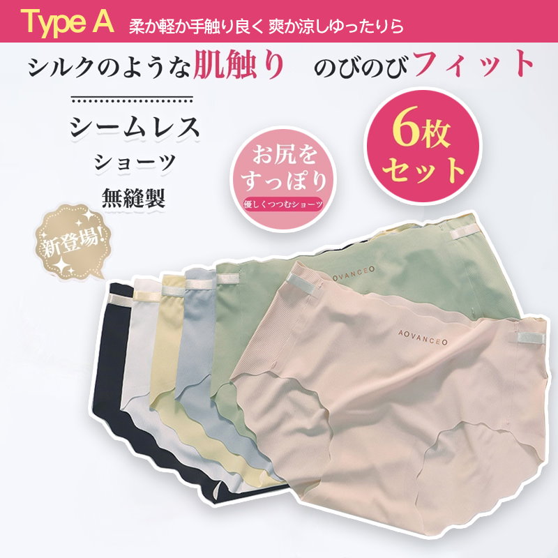 [8月新作入荷]シームレス ショーツ レディース ショーツ ショーツ セット 6枚セット 無縫製 下着 パンツ ストレスゼロ 肌着 響かない 伸縮性 圧迫感ない 綿コットン 骨盤