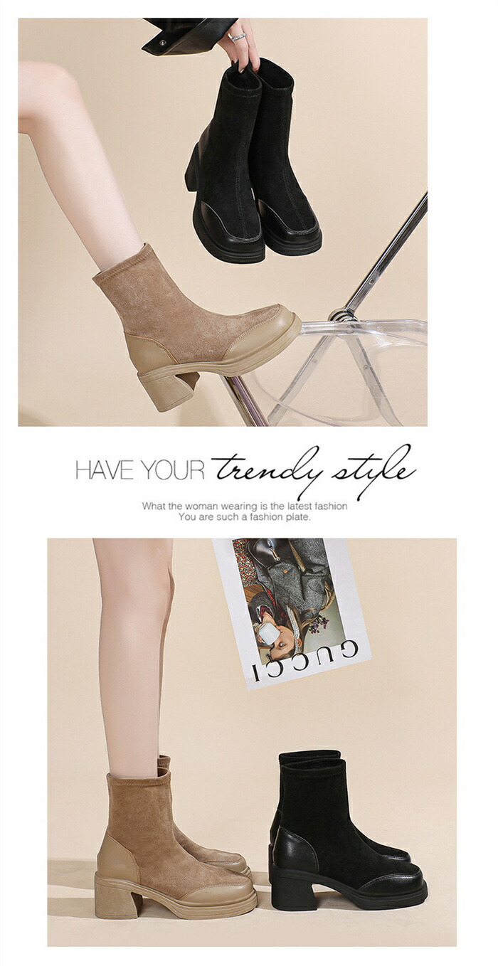 ブーツ ショートブーツ レディース 歩きやすい ジョッキー ハイヒール 疲れない ミドル丈 黒ブーツ ファスナー 美脚 ストレッチ カジュアル ハイヒールブーツ ハイヒール靴 厚底 ミドルブーツ 女性