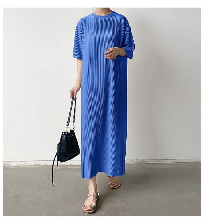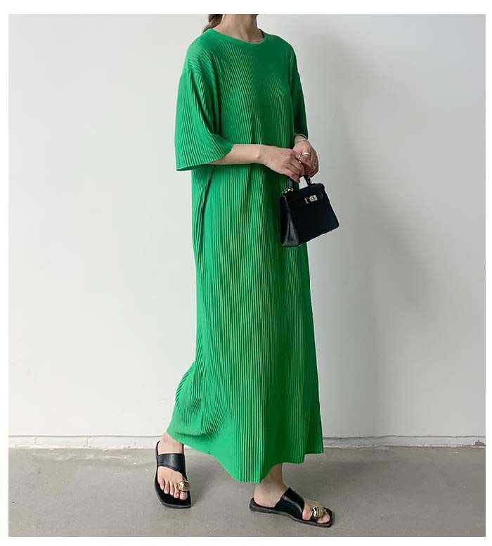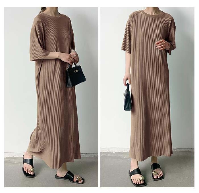 ワンピース 春 夏 秋 レディース 半袖 プリーツワンピース きれいめ ロング丈 大きいサイズ ゆったり 体型カバー プリーツ ワンピース ブラック お洒落 着痩せ シンプル カジュアル ゆるっと ビ