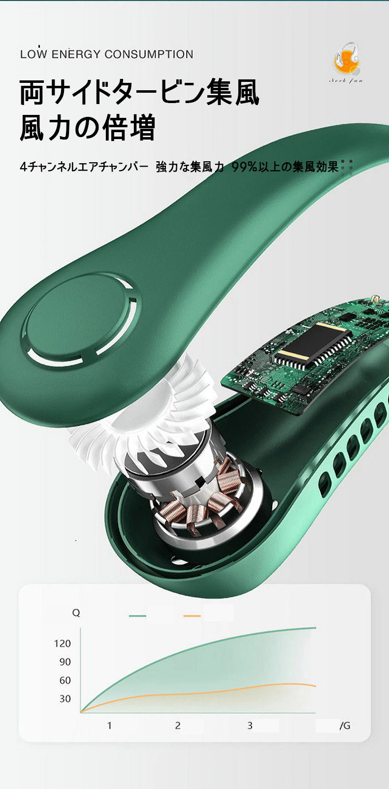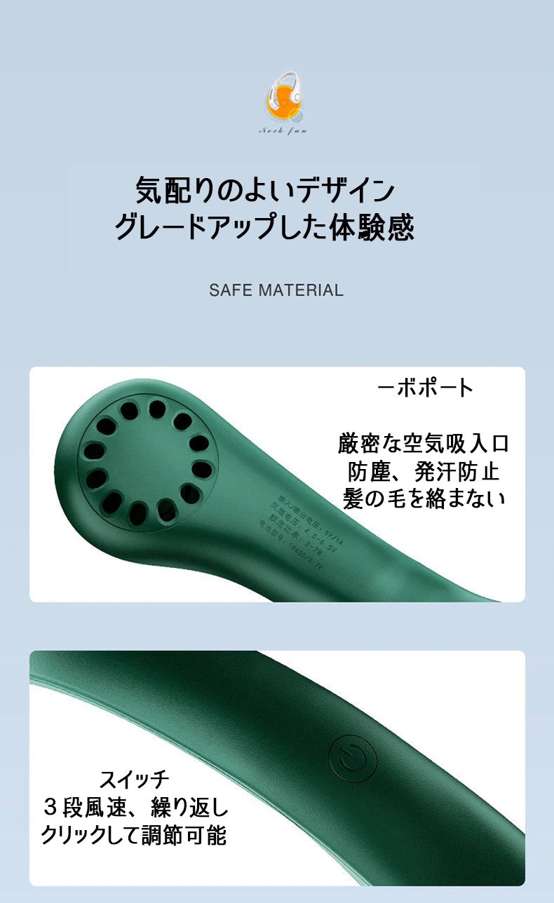 首掛け扇風機夏季節家電USB充電持ち運び便利三段階風量調節熱中症対策