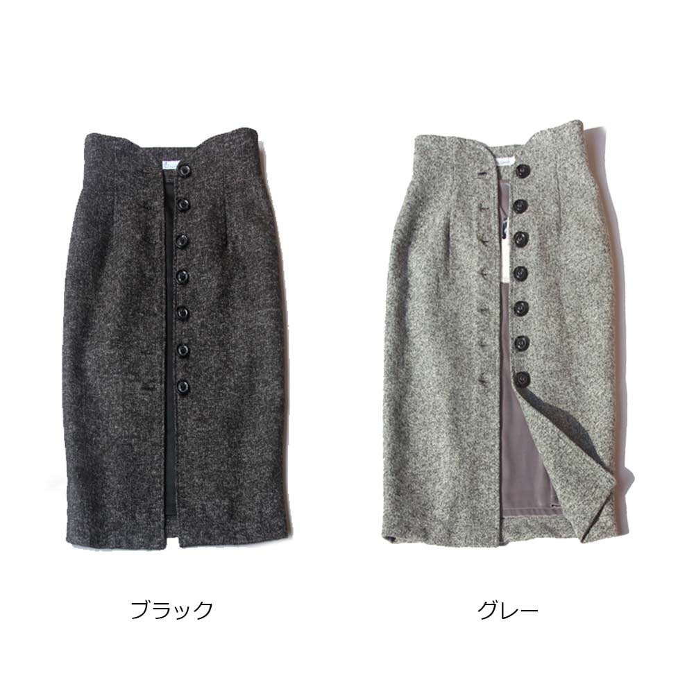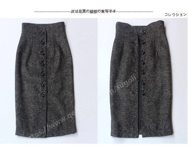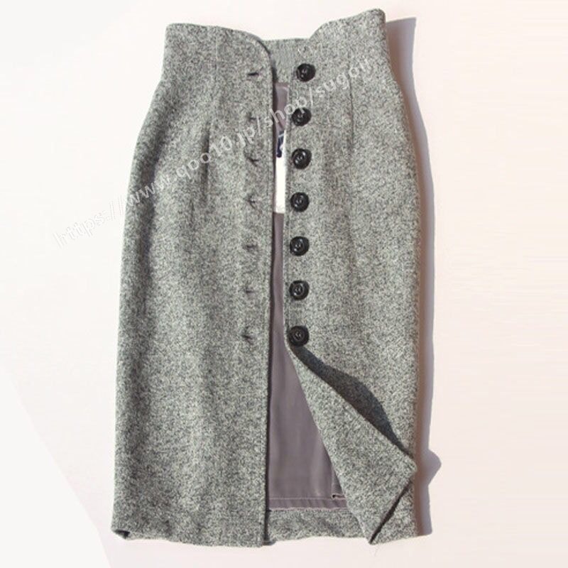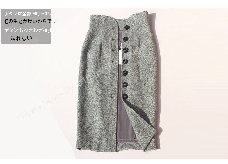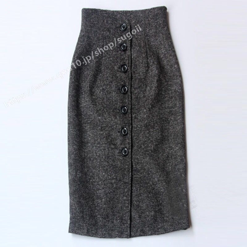 ハイウエスト タイトスカート ミモレ丈 スカート ひざ丈 ミディアム丈 スリット 秋冬 ウール混 デニムスカート