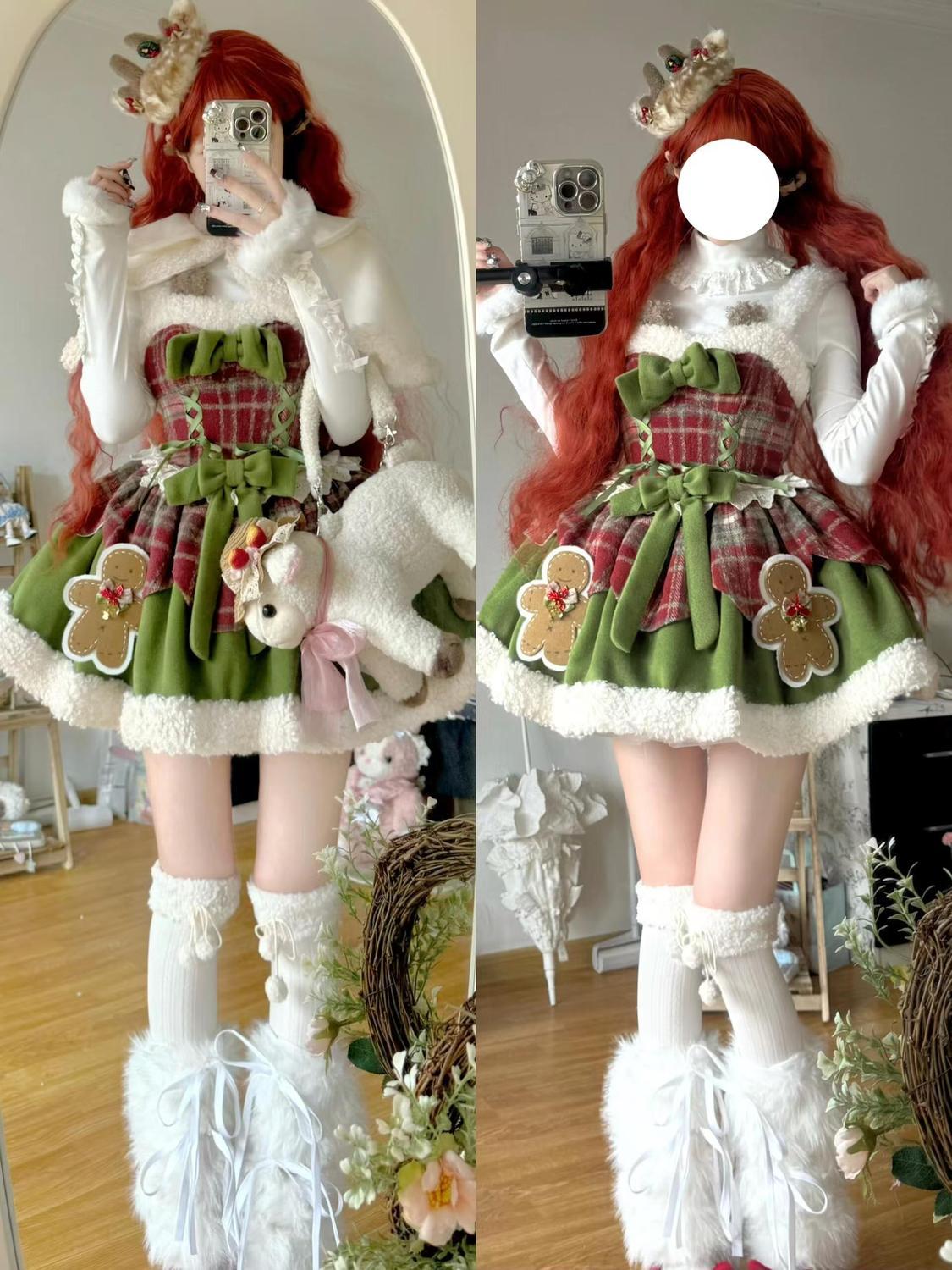 サンタコスプレ 秋冬 スウィート クリスマス ドパミン かわいい 力仕事 ボトムス ポンチョ ジャケット ホルタードレス 三点セット韓国