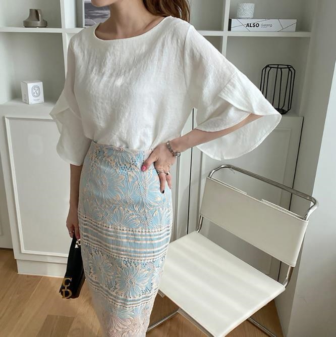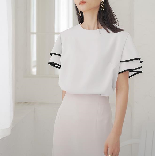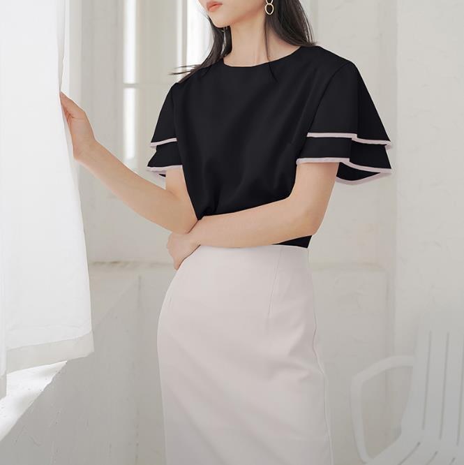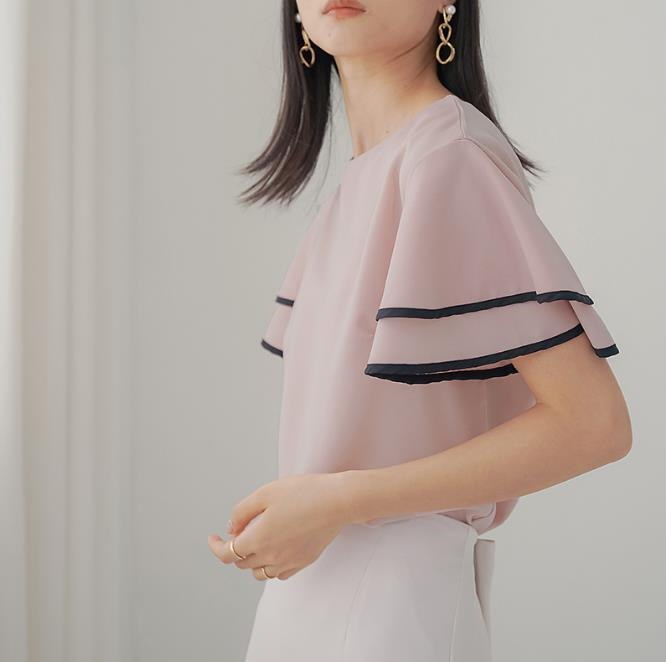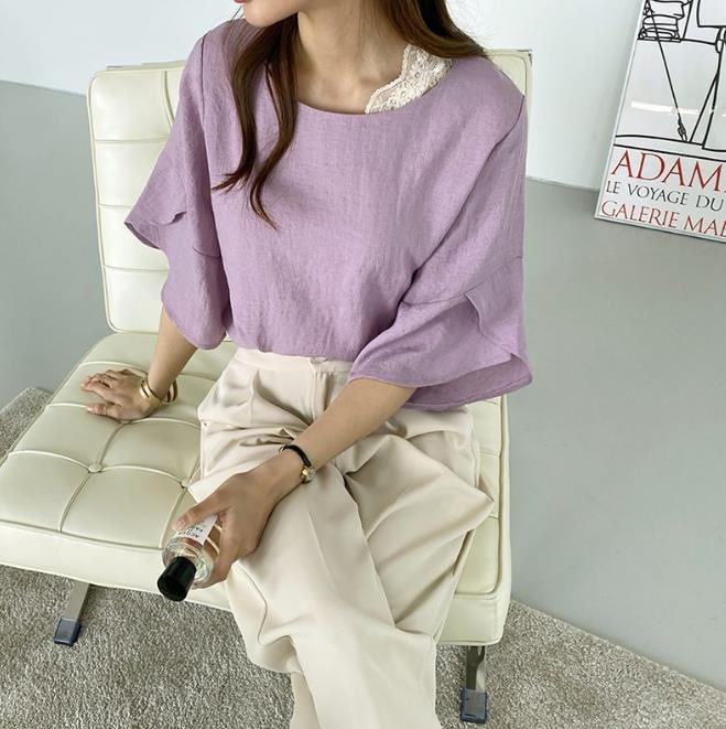 大人気 フレア袖ブラウス Tシャツ 可爱い ゆったりしたTシャツ レディース Tシャツ 無地レース