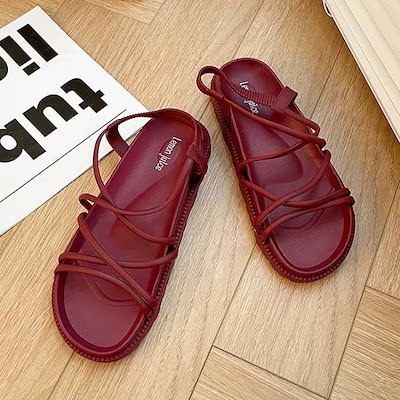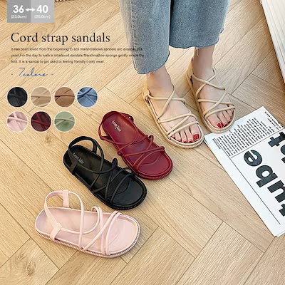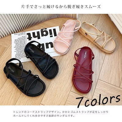 美脚サンダル 歩きやすい 履きやすい 厚底 コードストラップ アンクルストラップ シンプル レディース サンダル
