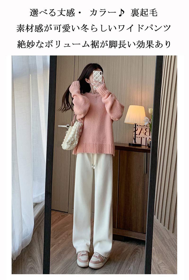 コーデュロイ ワイドパンツ 裏起毛 レディース 秋冬 パンツ ロング ウェストゴム ストレートパンツ リボン ハイウエスト 高身長 低身長 ロングパンツ コーデュロイパンツ 暖かい 防寒 イージーパン