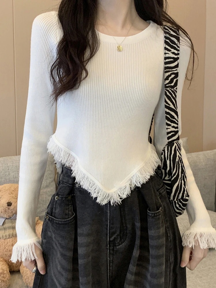 長袖ニットトップス女性2023新しいスリムグリーンインナーボトムシャツニッチプレミアムフィーリングセーター ニット