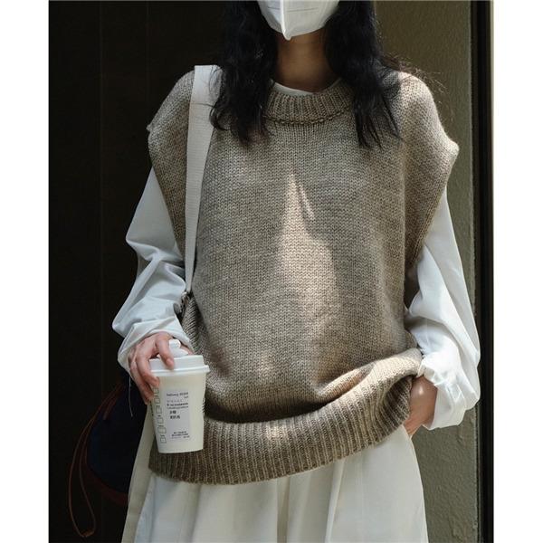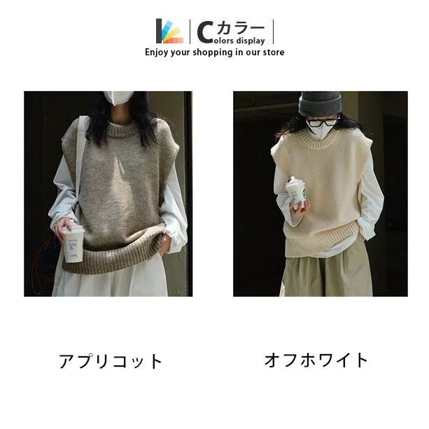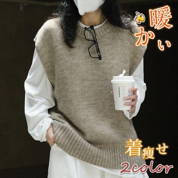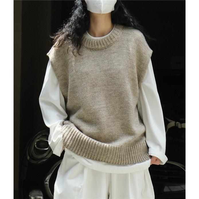 ベストクールネックレディースニットベスト春秋冬ベストセーターノlースリープ無地カジュアル韓国風ゆったり通勤着痩せ体型カバー ベスト