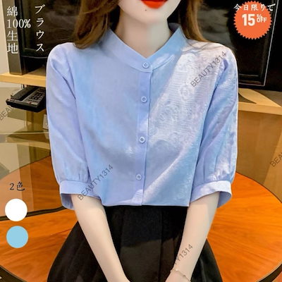 ブラウスレディース2024年夏新作婦人服五分袖ゆったりお腹カバー綿シャツ婦人洋風全綿スタンドカラートップス