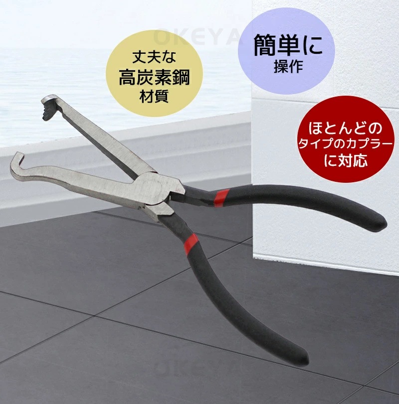 カプラー外し工具 曲げタイプ カップリングツール 配線カプラー コネクター取り外し プライヤー 自動車 バイク エンジン 整備作業 燃料ホース ナビ PC燃料パイプ クイックリリース クイックジョイン