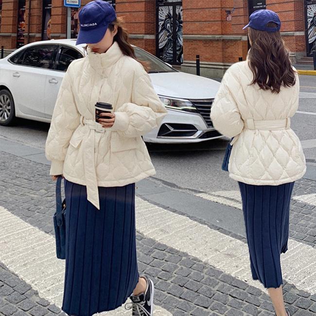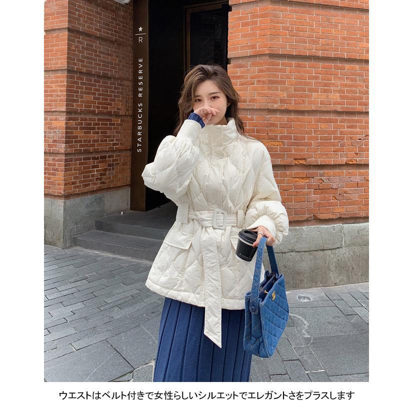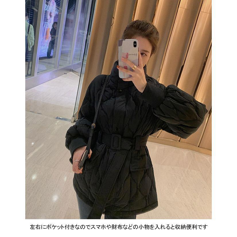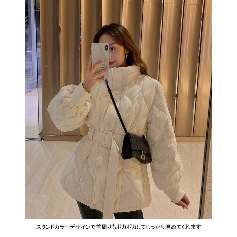 中綿コート レディース アウター 無地 立ち襟 軽量 防寒 保温性 前開き ポケット ベルト 暖かい ゆったり シンプル 秋冬 その他 アウター