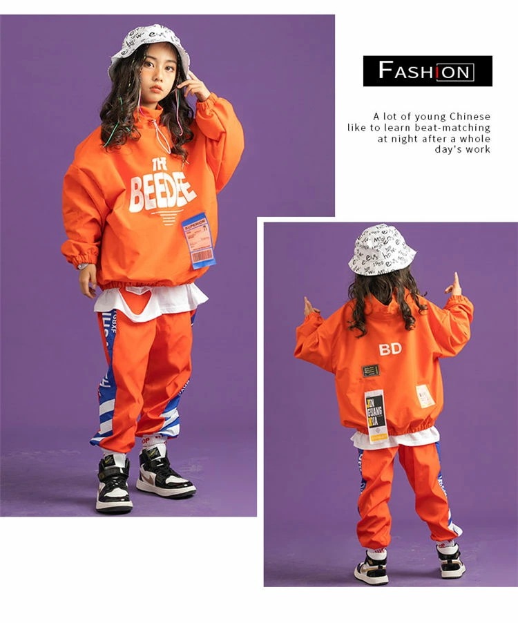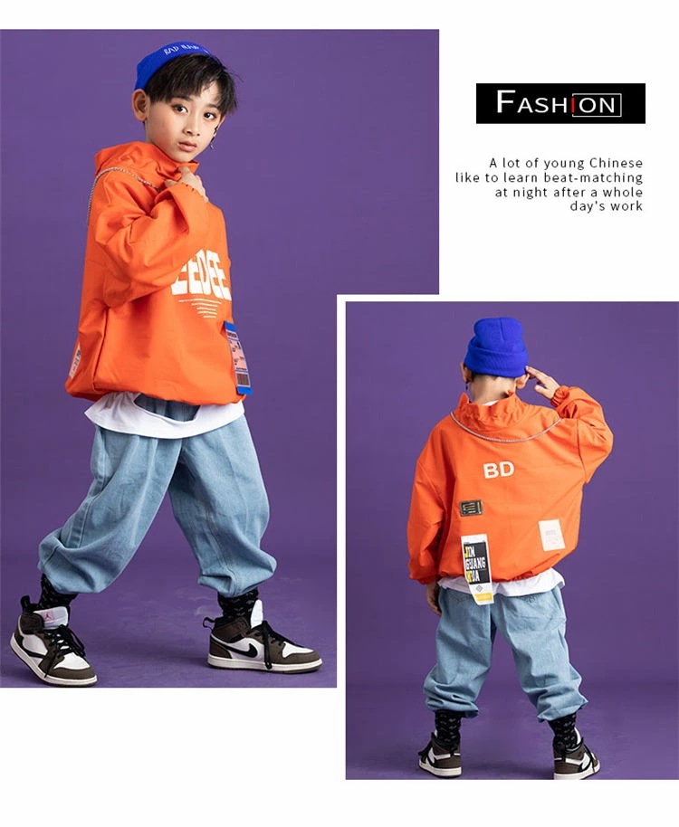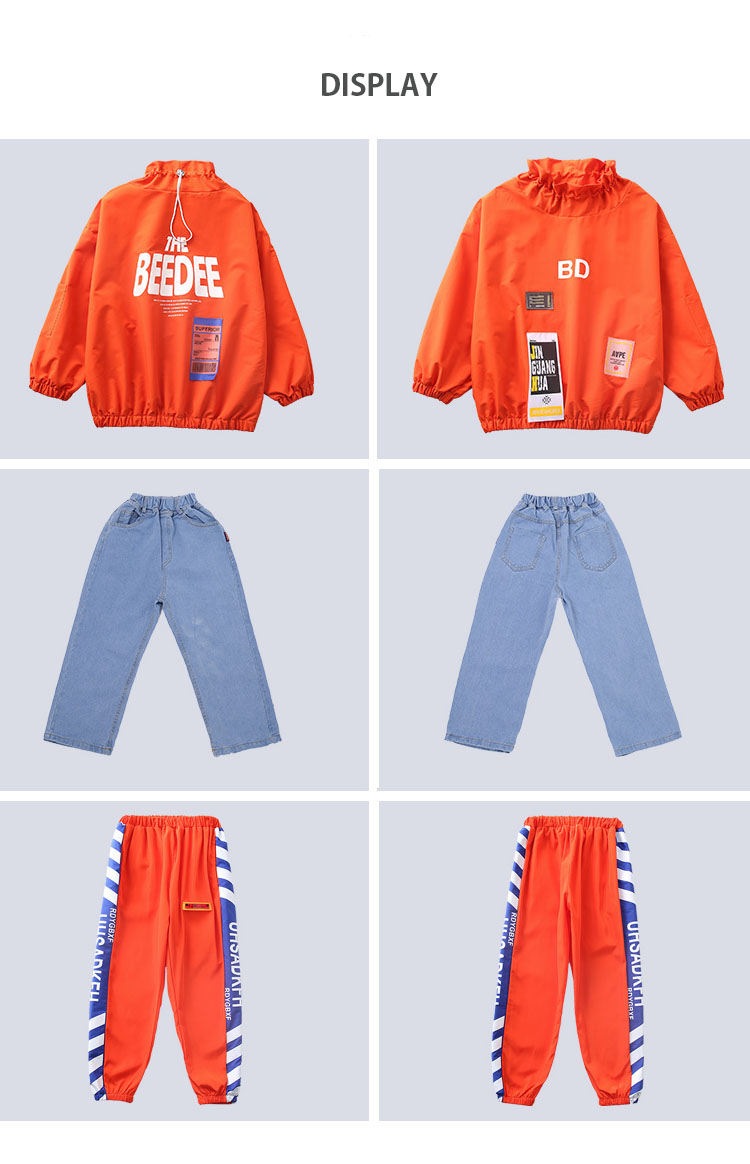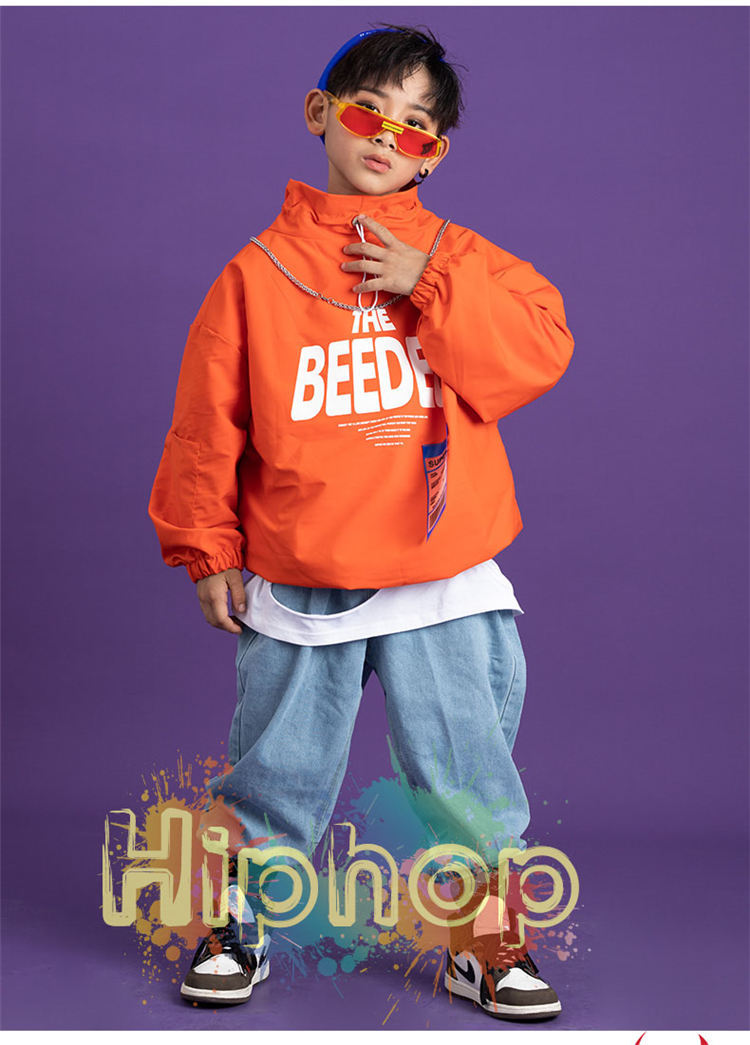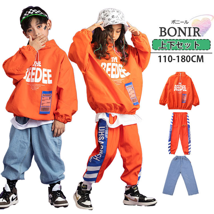 オレンジ ウィンドブレーカー ジャージ 上下 女の子 男の子 デニムパンツ 子供服 ヒップホップ ダンス衣装 セットアップ トップス 上下セット トレーニングウェア