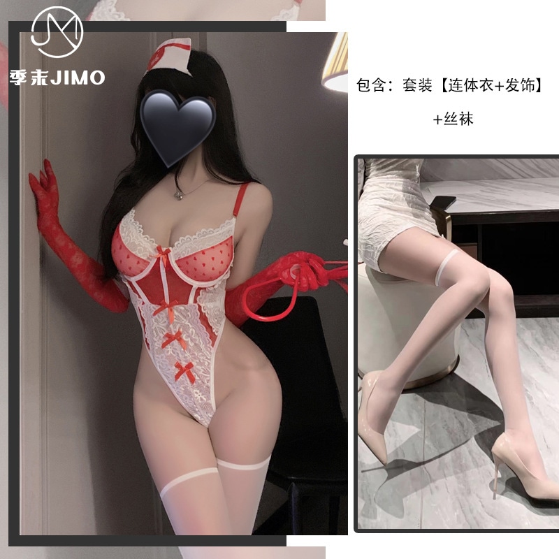 ランジェリー 愛の水玉レースナースユニフォームボディスーツ コスチューム