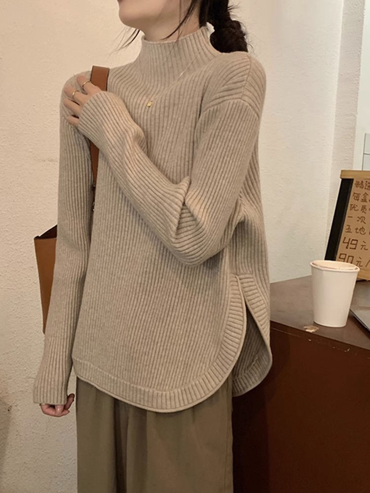 人気なリブニット韓国ファッションニットセーター 秋冬 タートルネック ニット百掛け カシミヤタッチ厚手トップスインナーセーターレディース韓国ファッション