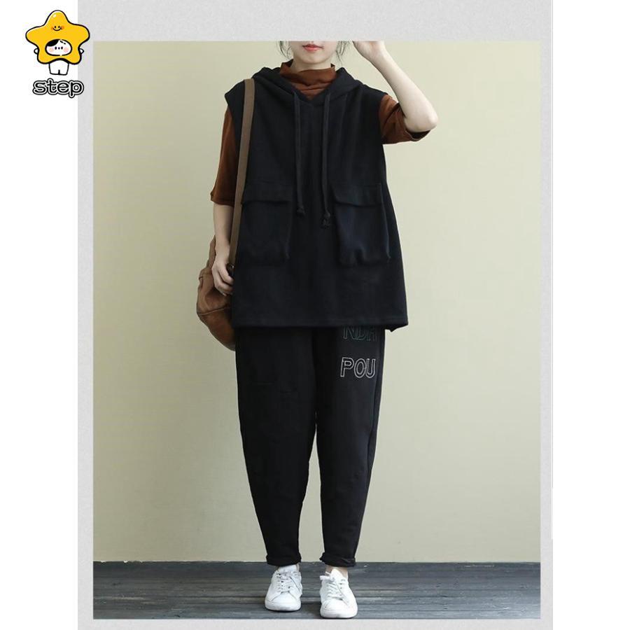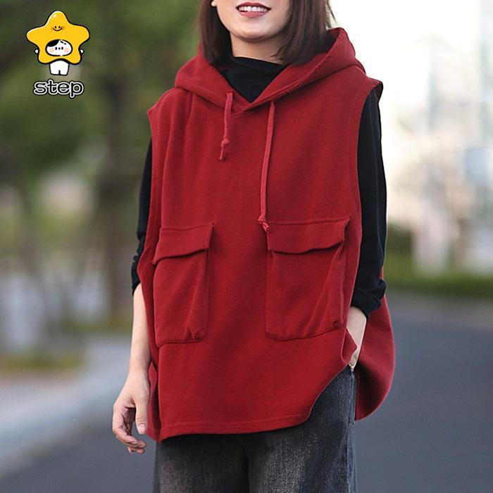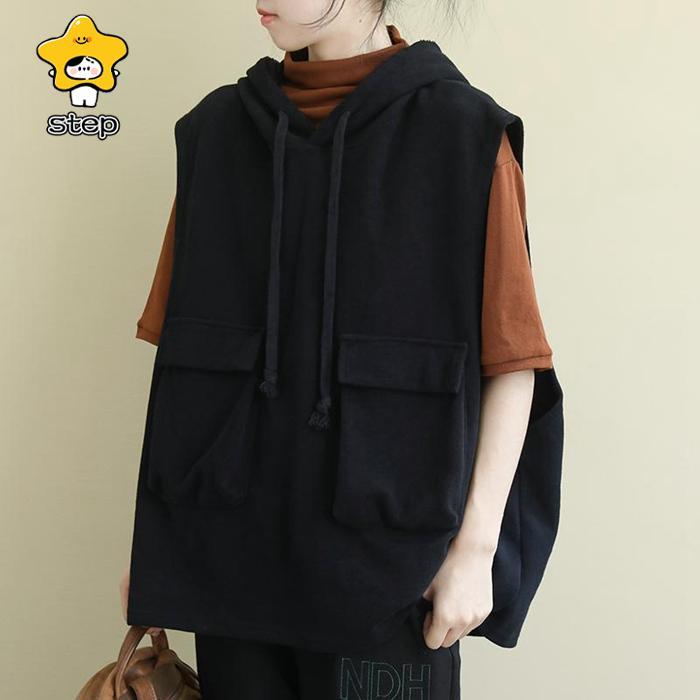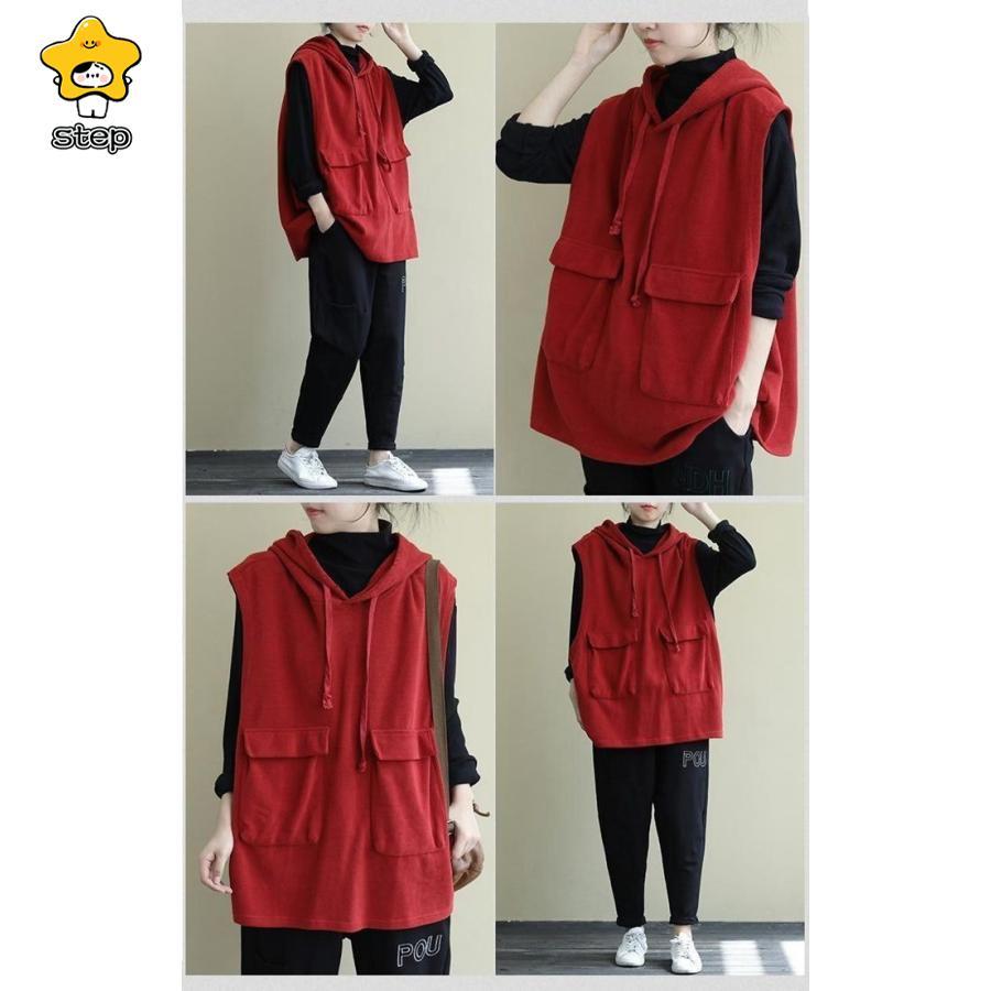 パーカー レディース ノースリーブ フード付き ベスト プルオーバー ポケット付き ゆったり 重ね着 レイヤード トップス お洒落 パーカー