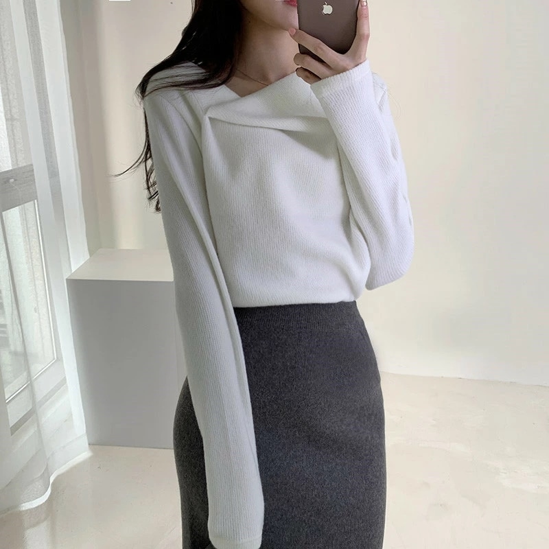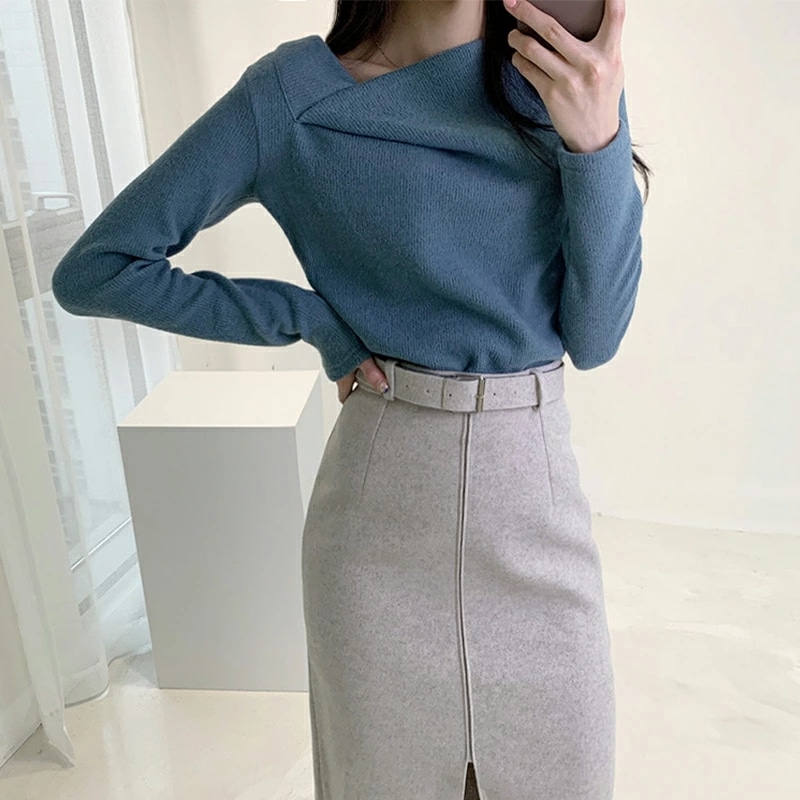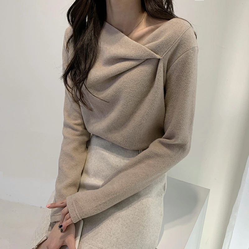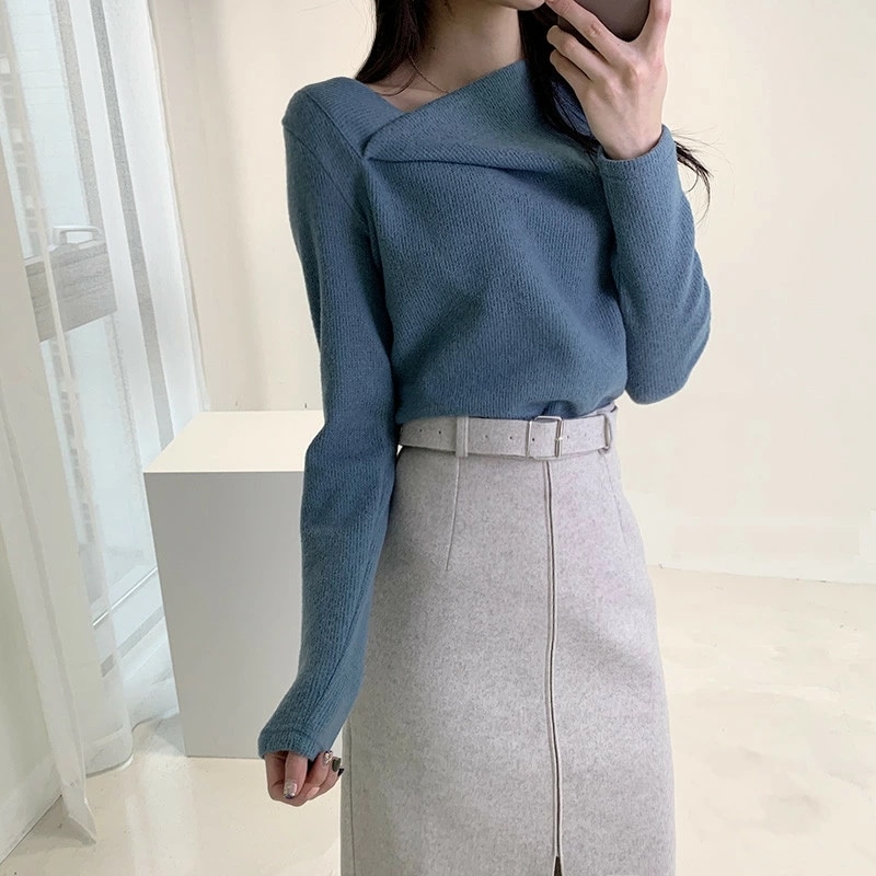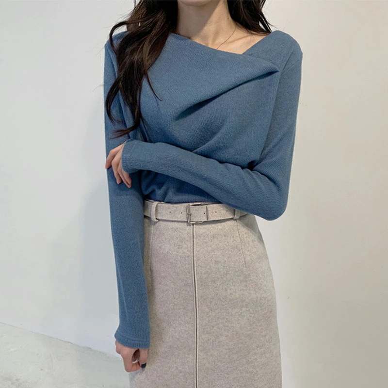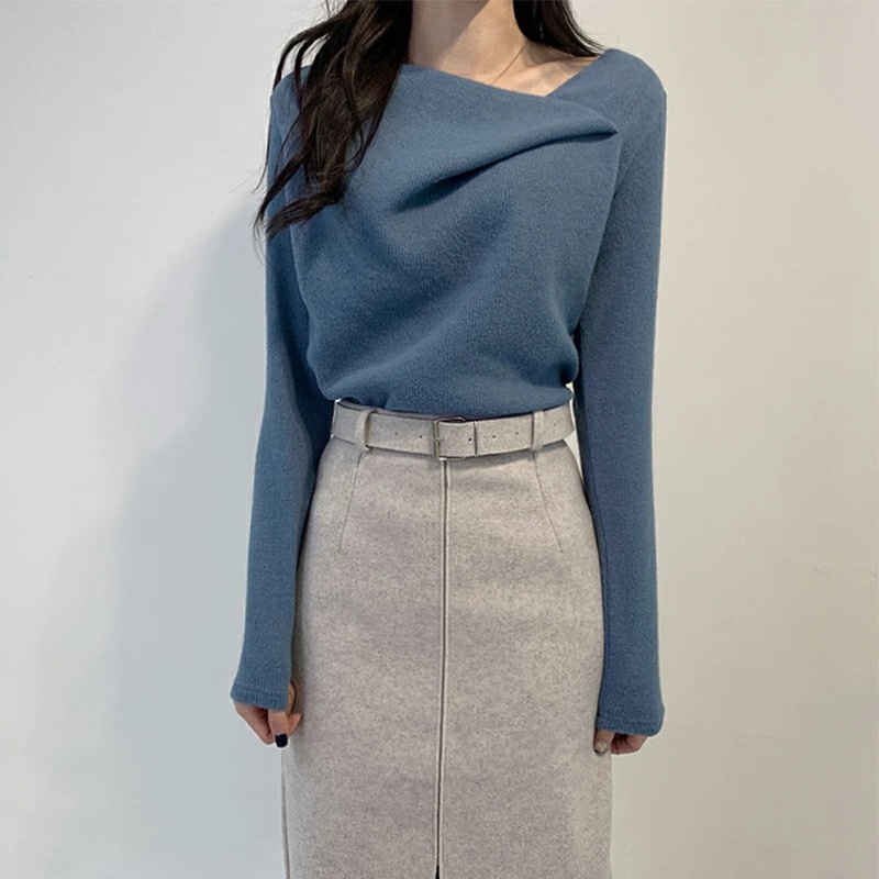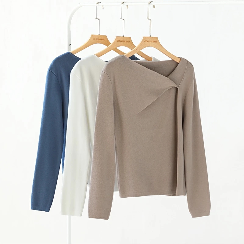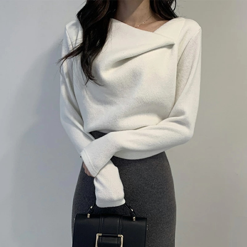 イレギュラーネックニット オフィスカジュアル きれいめニット ニット イレギュラーネック きれいめ 長袖 トップス レディース アシンメトリー プルオーバー ニットセーター シンプル