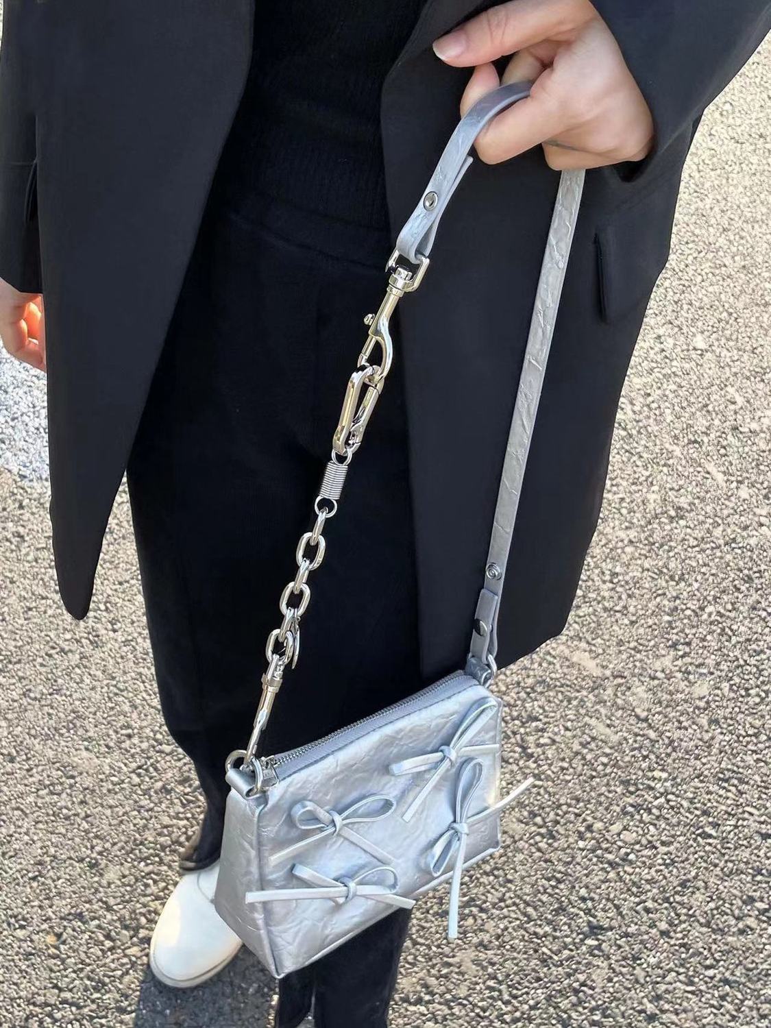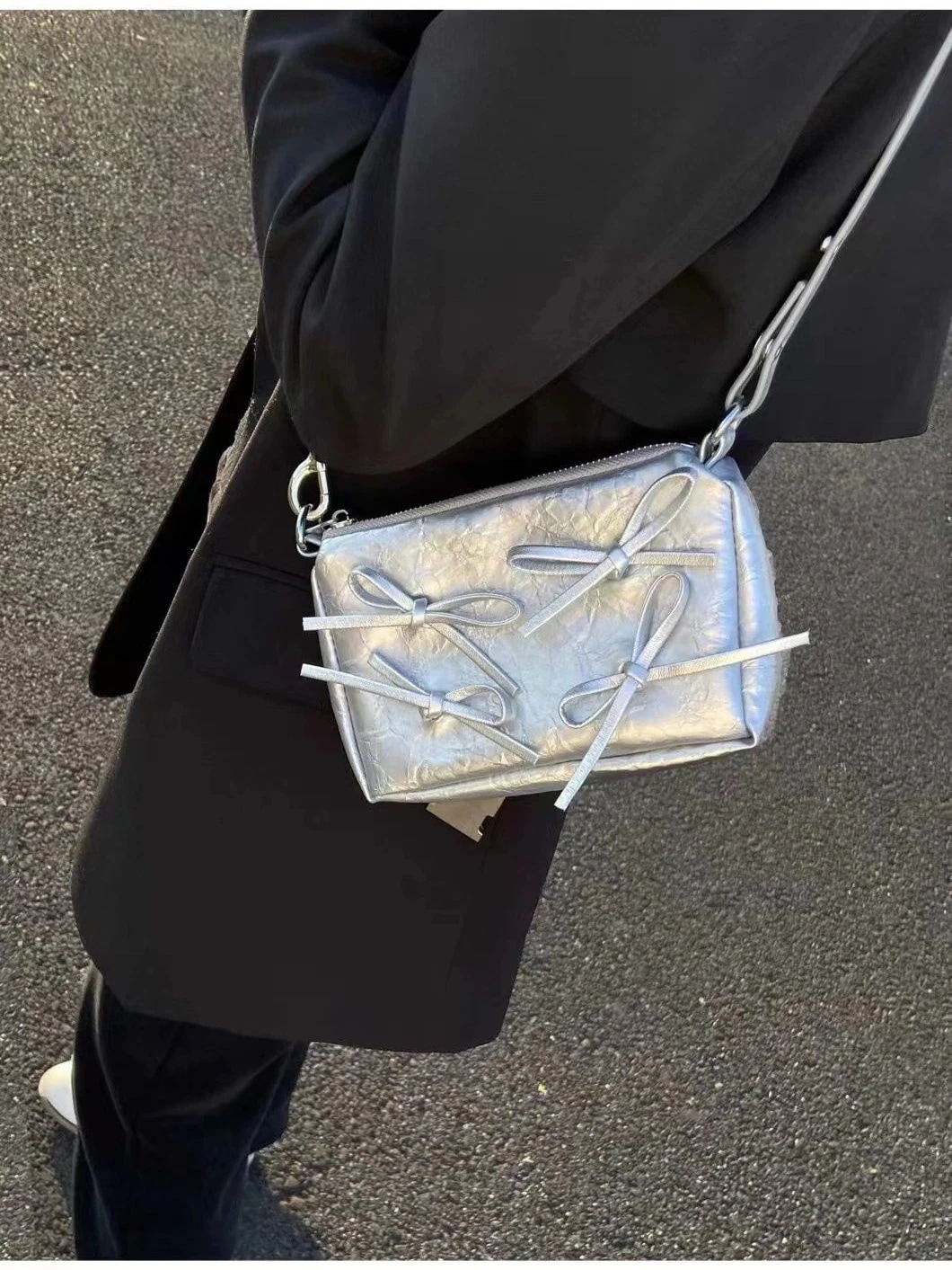 ミニバッグ 蝶結び シルバー かたかた掛け ショルダーバッグ 韓国ファッション ミニバッグ流行り ショルダーバッグ ショルダーバッグ