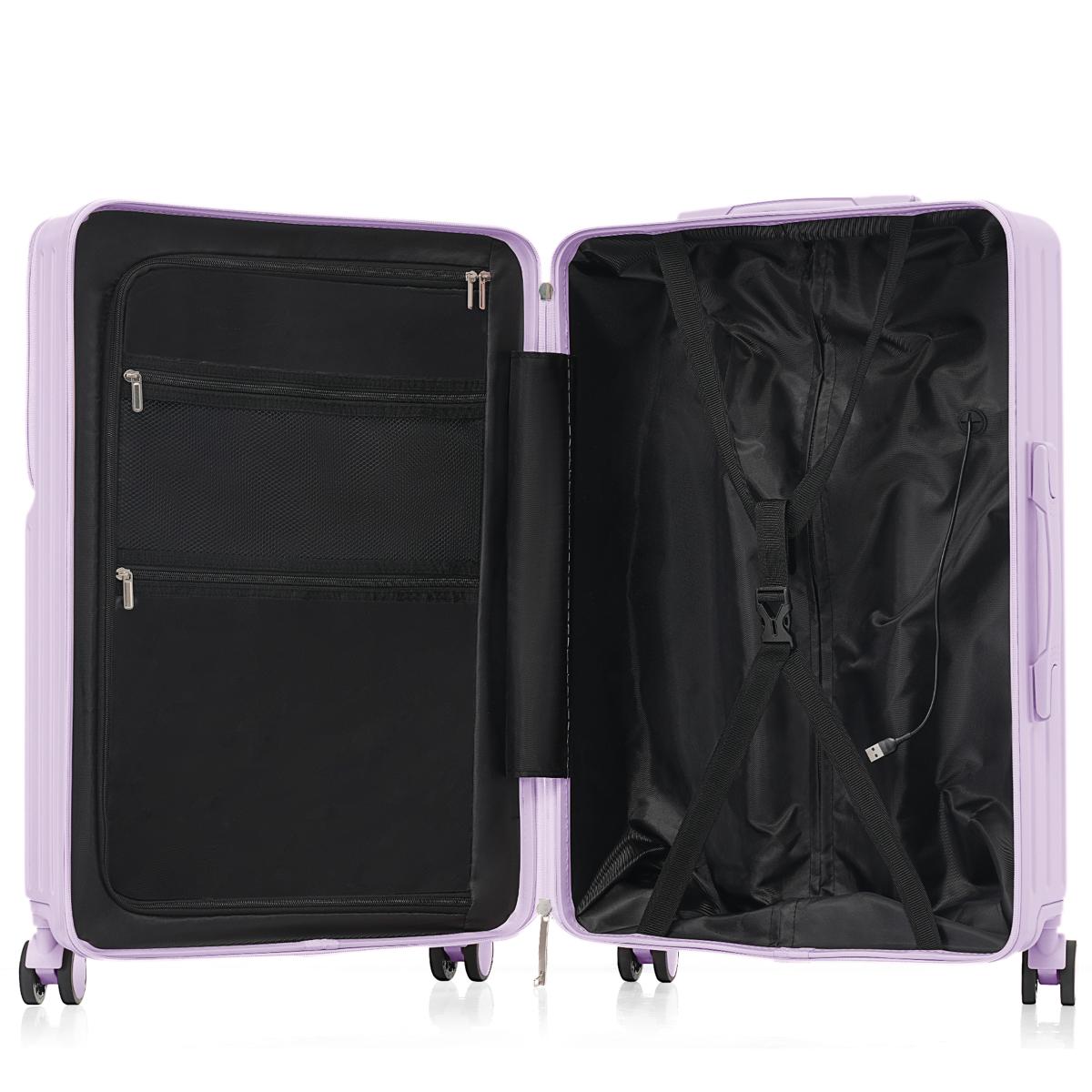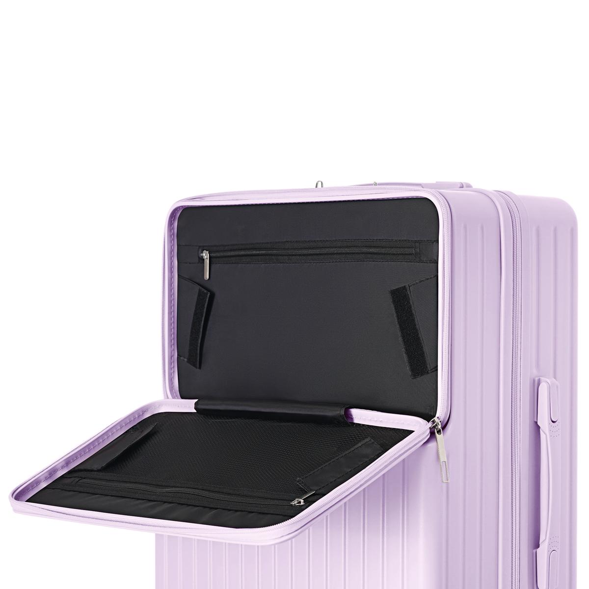 スーツケース Mサイズ フロントオープン USBポート付き ストッパー付き ドリンクホルダー付き フック付き 前開き キャリーケース キャリーバッグ おしゃれ かわいい 軽量 大容量 7日用 中型 TSAロック 前ポケット付 ビジネス パソコン suitcase China Purple