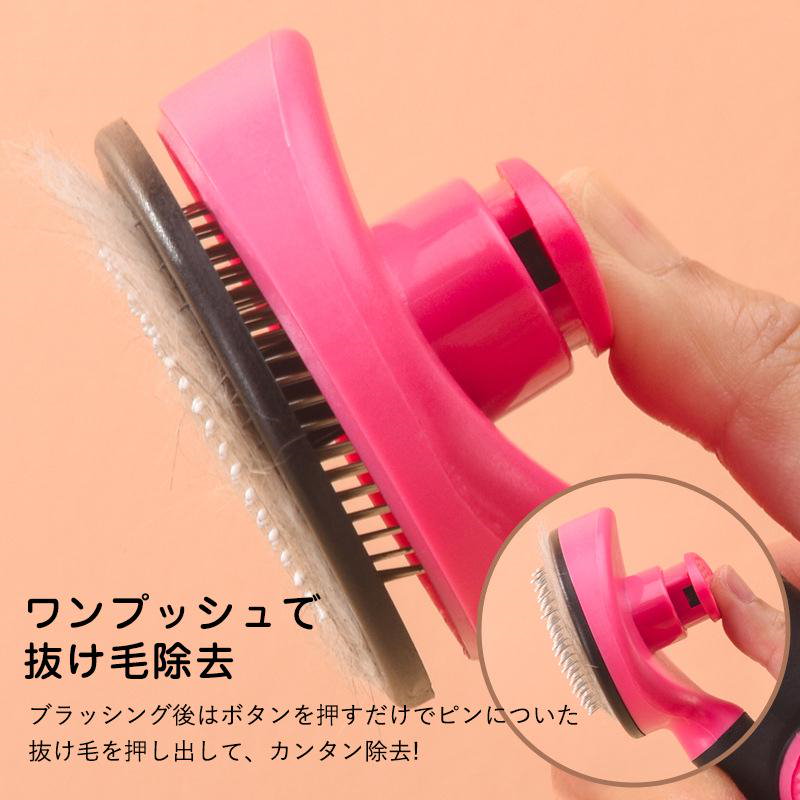 猫ブラシ 犬猫通用 ボタンを押してワンプッシュ式 長毛 マッサージ 中毛 短毛 スリッカーブラシ 犬ブラシ ペットブラシ 抜け毛取り ブラッシング ペット