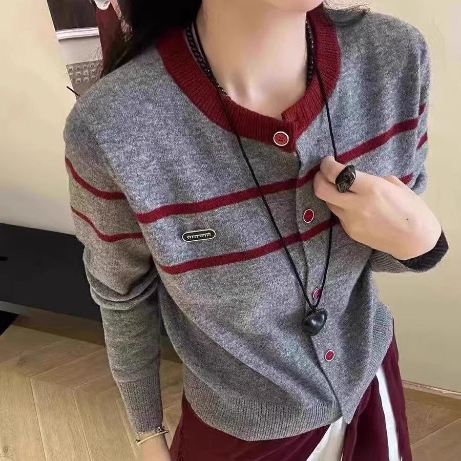 2024新作韓国ファッション秋冬ニットセーター デザイン感長袖ニットカーディガンレディース トップス ファッション 快適 アウター通勤 カーディガン