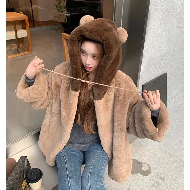 毛皮コートファージャケット レデイース 冬 超保温 フード付きコート 韓国ファッション 可愛いふわふわ アウター 百掛け 厚手 冬ジャケット 毛皮アウター 学生 通学 通勤