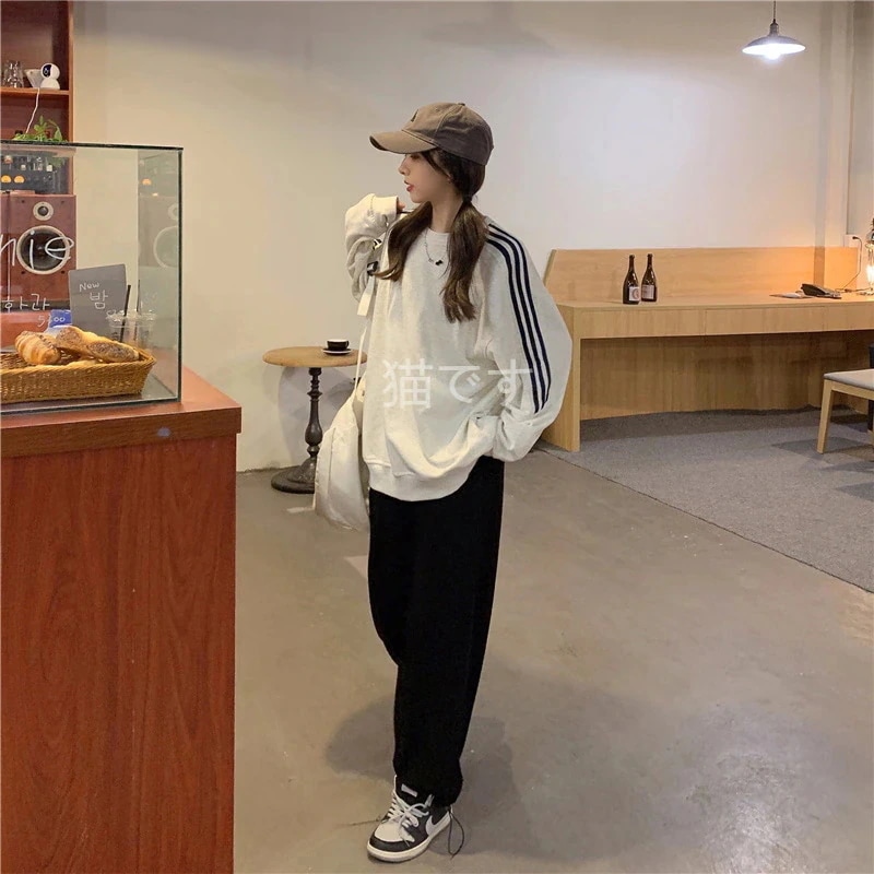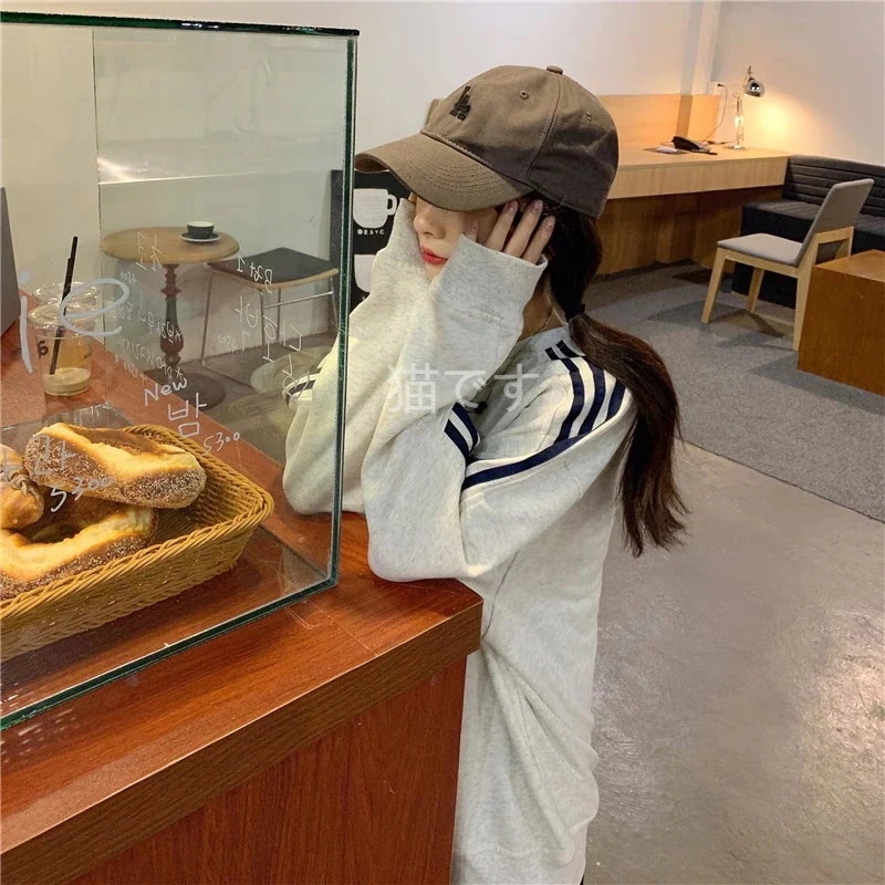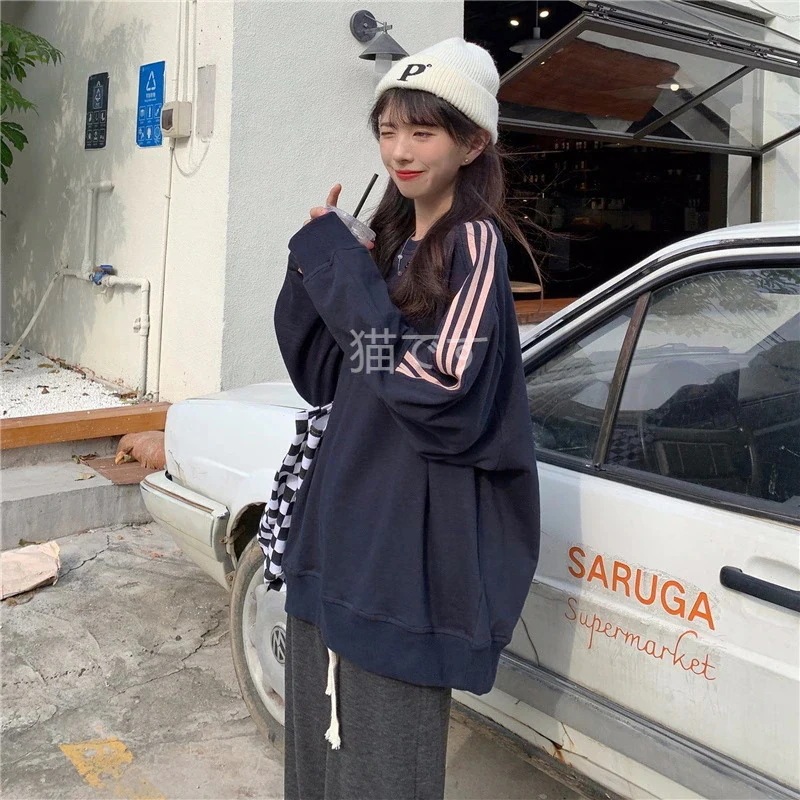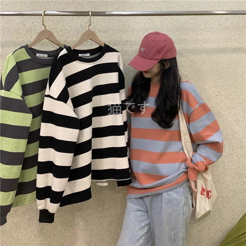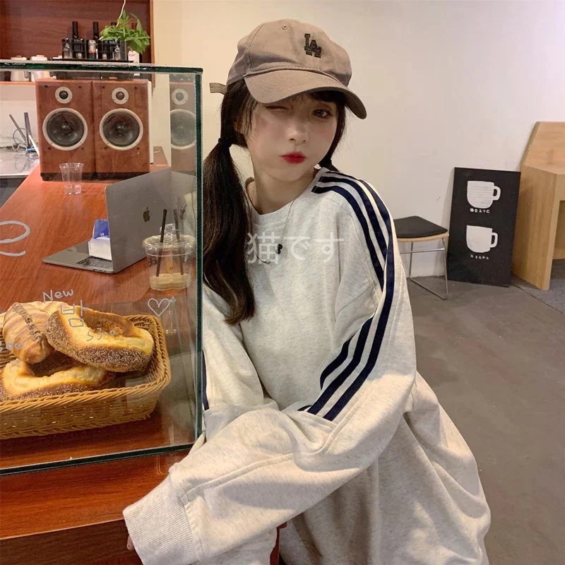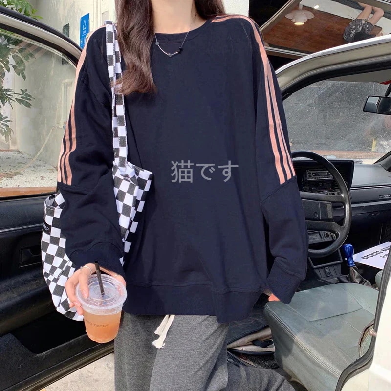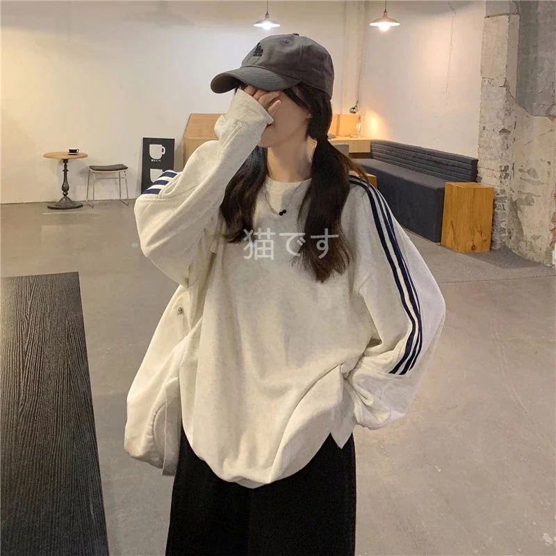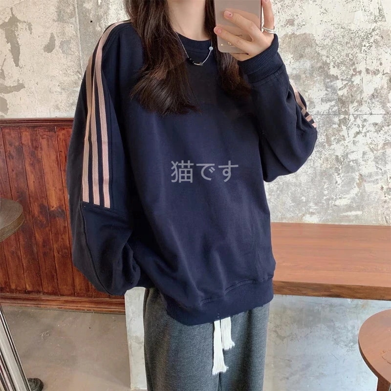 長袖tシャツ スウェット パーカー レディース トップス プルオーバー トレーナー 韓国ファッション tシャツレディース ストライプ オーバー サイズ パーカー