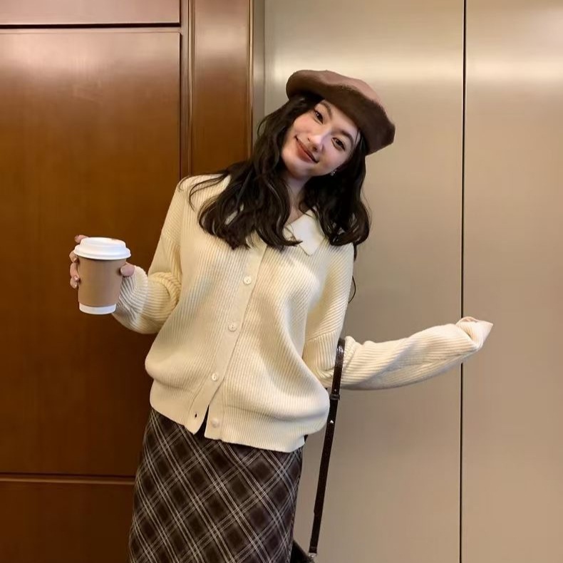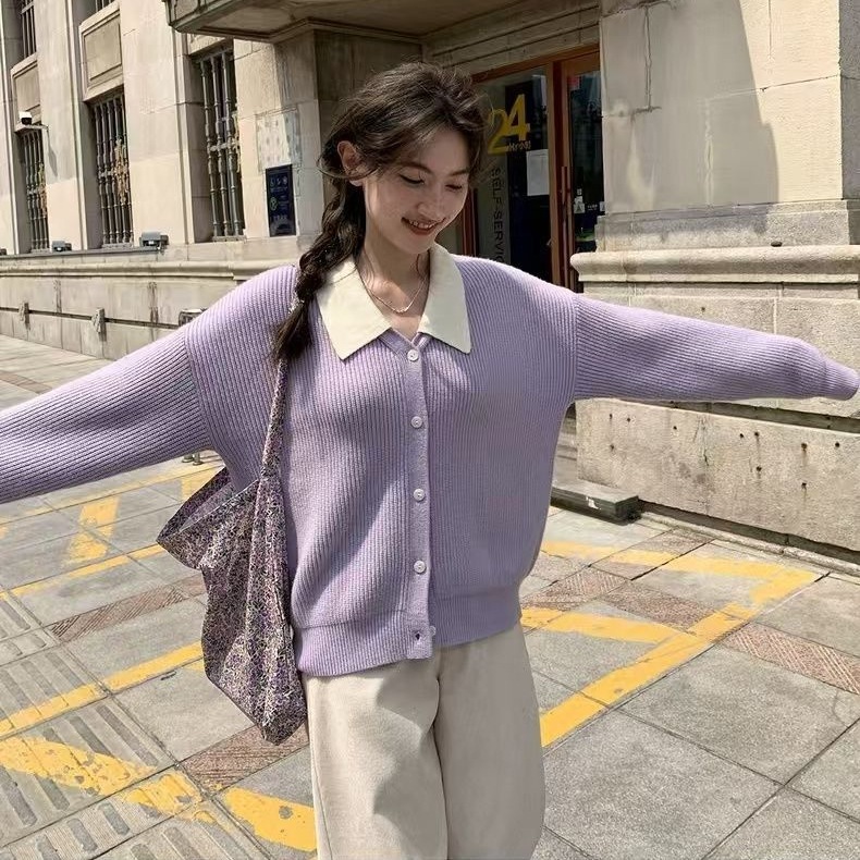 秋服の偽のセーター2枚とネット赤揚げ街の減齢ニットカーディガンを着ている ニット