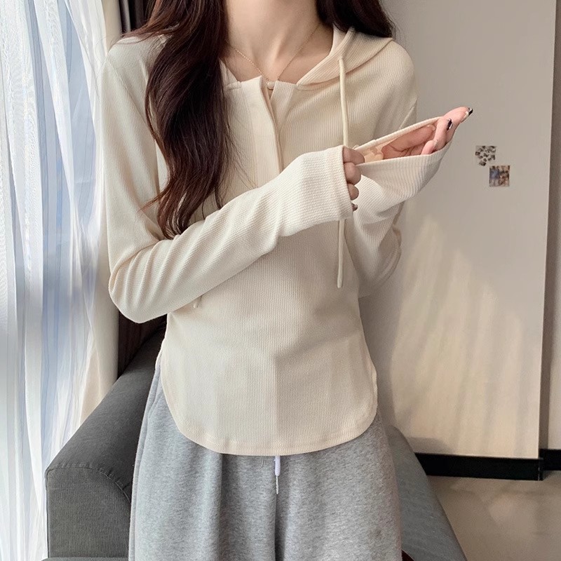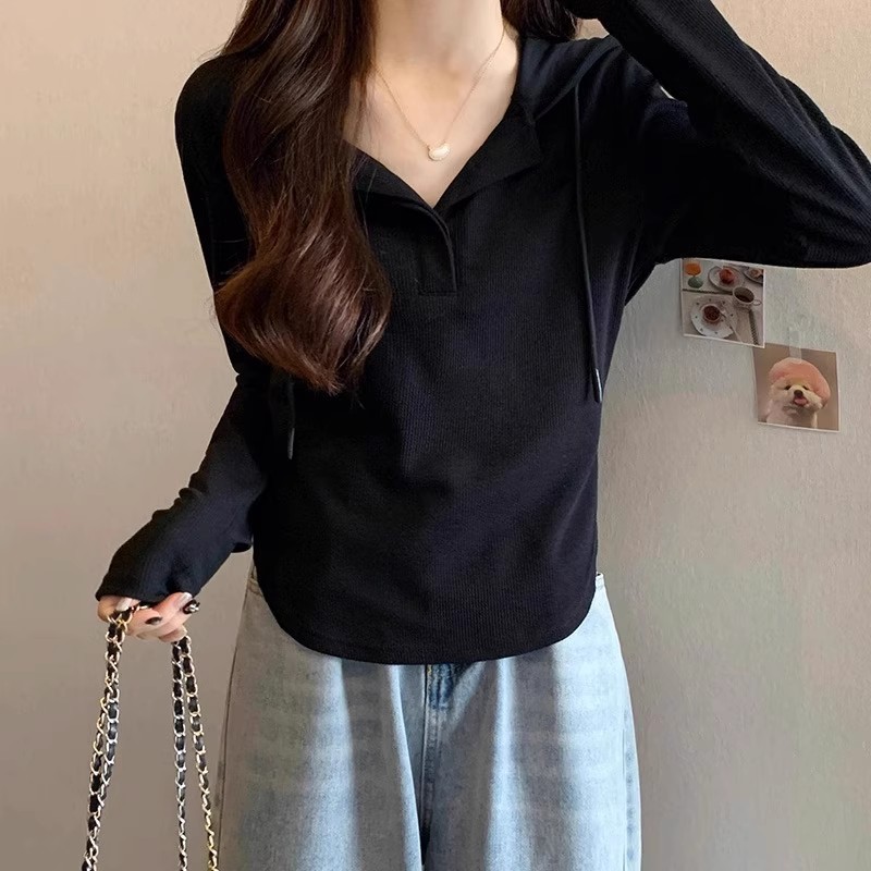 純欲ギャルタイトTシャツ女性長袖秋冬新作連帽正肩すぼめ腰やせタイツアウタートップス Tシャツ カットソー
