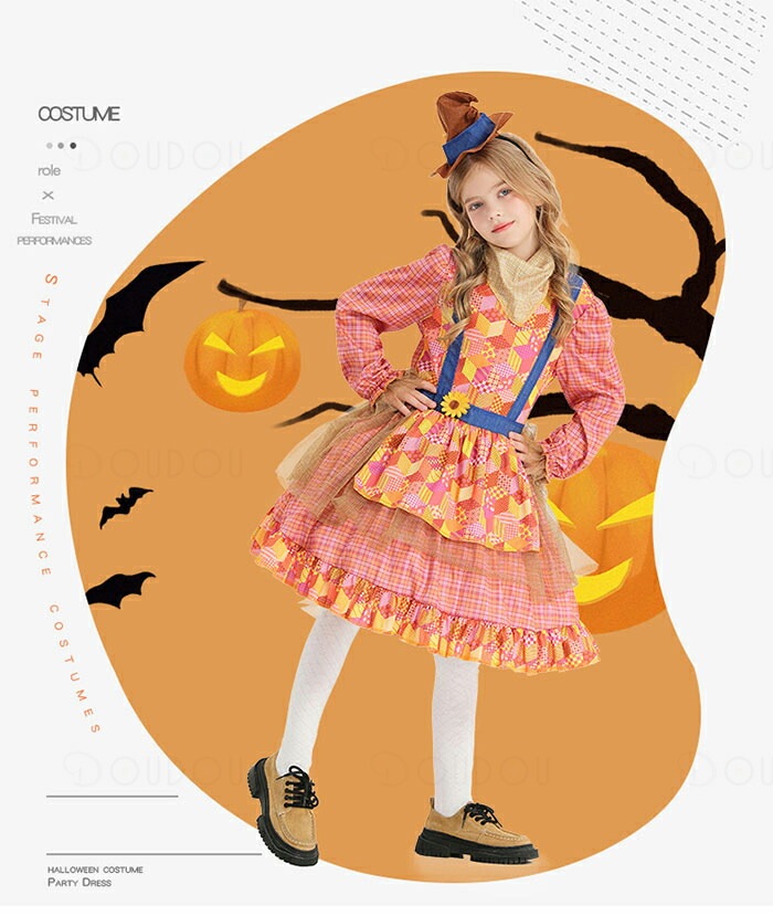 2024 ハロウィン コスプレ衣装 子供 かかし 吸血鬼 コウモリ こうもり 魔女 悪魔 復古ワンピース 女の子 衣装 仮装 ハロウィーン ダンス衣装 キッズ コスプレ コスチューム 魔法 演出服 舞