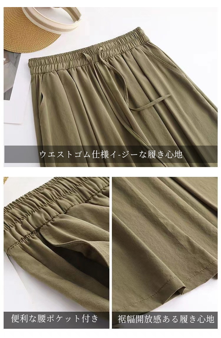 七分丈ガウチョパンツ冷感 レディースキュロットスカーチョ膝丈 ワイドパンツ 大きいサイズ ボトム体型カバー ハイウエスト ゴムフレアパンツゆったり チノパンツ薄手シャリ感楽チン脚長 大人 カジュアルお