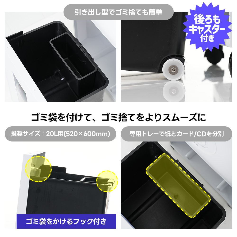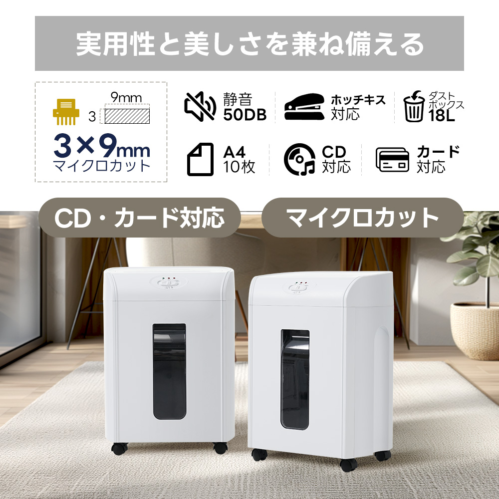 シュレッダー 18L 家庭用 業務用 電動 コンパクト 静音 家用 A410枚同時切断 CD カード対応 マイクロカット シュレッダー機 書類整理 個人情報 超静音 8分連続使用 White ABS