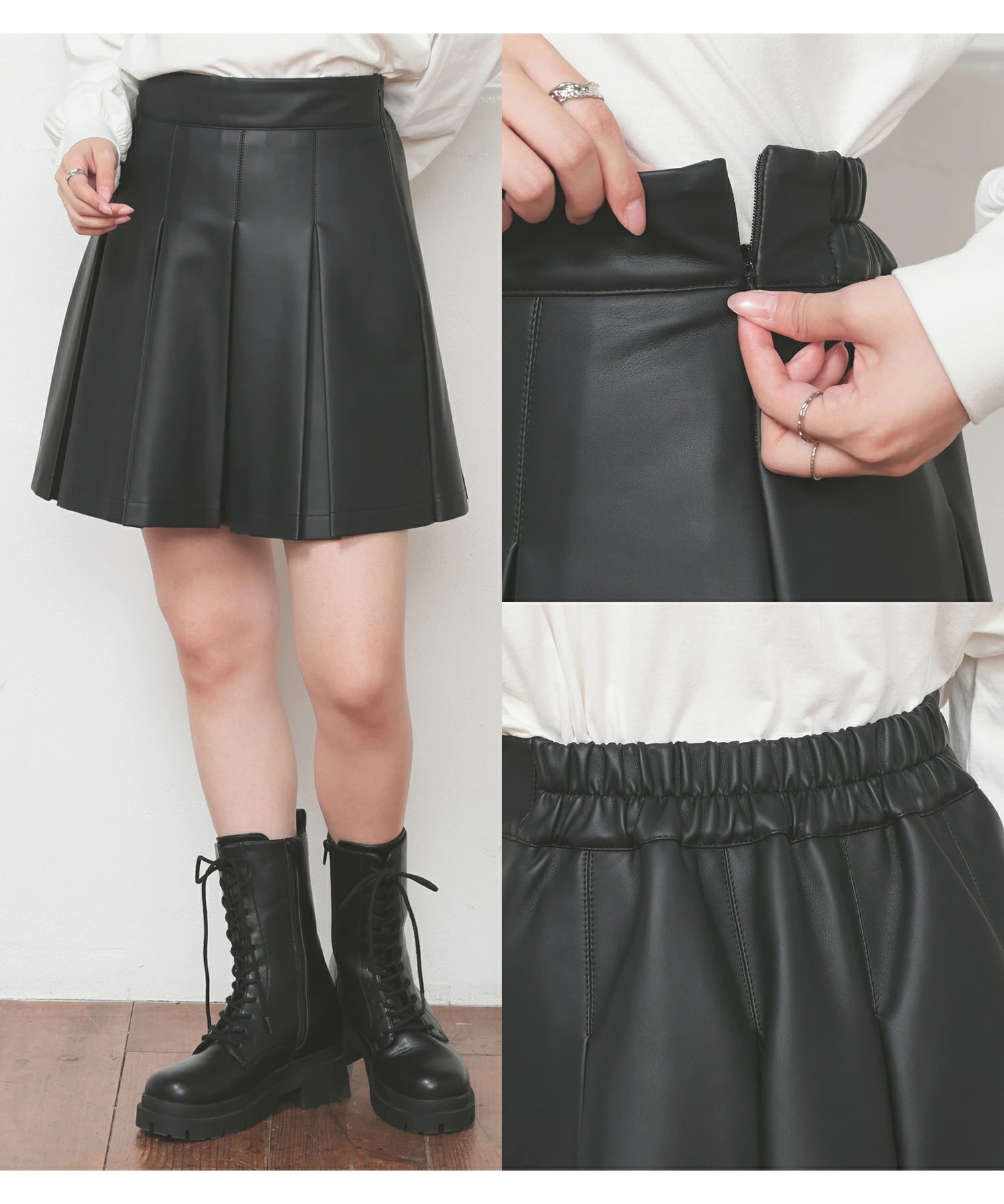 Honeys 合皮ミニプリーツスカート ボトムス スカート ミニスカート ミニ丈 プリーツスカート ミディアムスカート