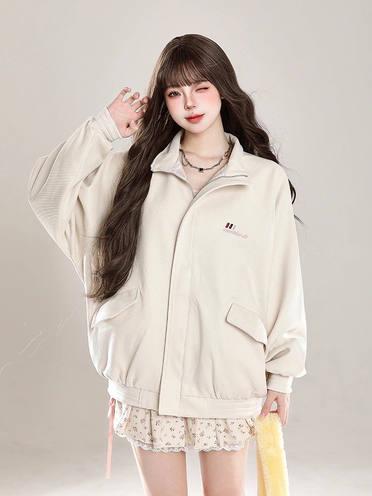 2024秋冬韓国かわいいレディースアウターブルゾンお出かけ長袖セクシーベースシルエットトップスサイド冬カジュアルファッションサイズお出かけネックフル丈スリーブトラック