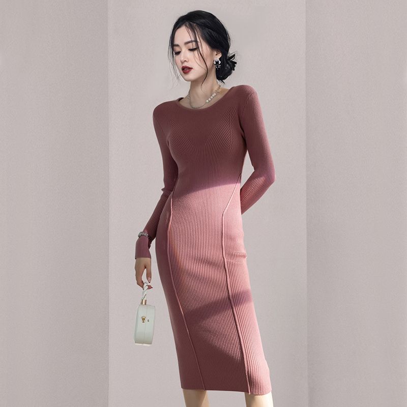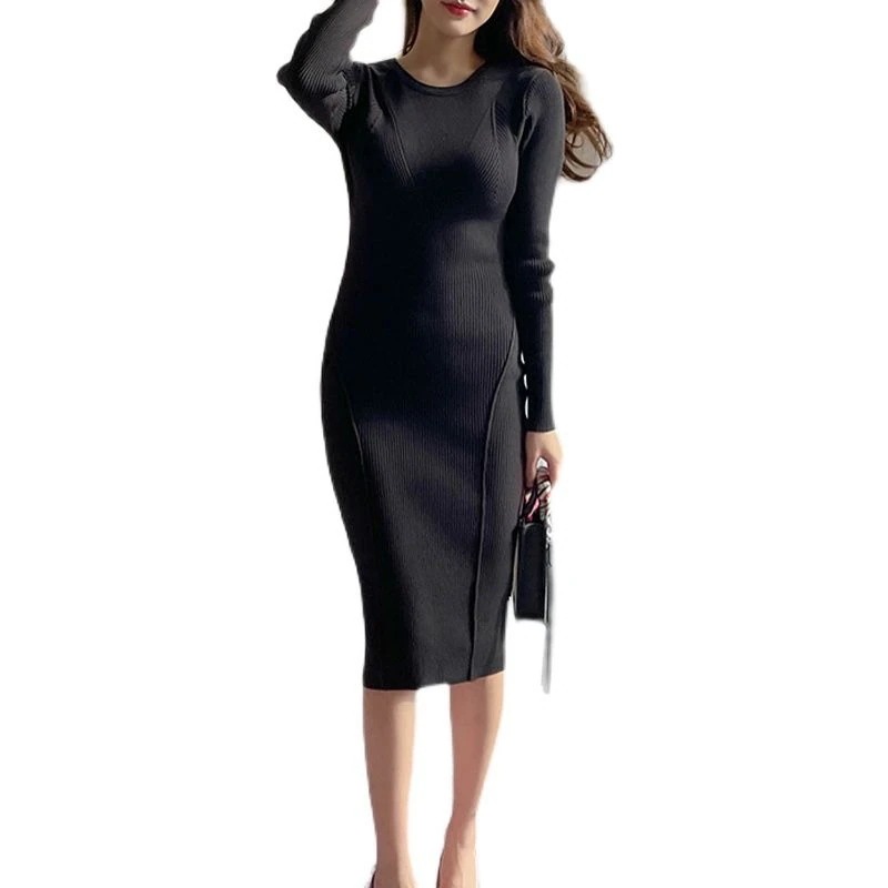 冬のワンピース エレガント フレンチヴィンテージ スリミング 着痩せ 高級感 気質 OL通勤 ニッ ニットワンピ