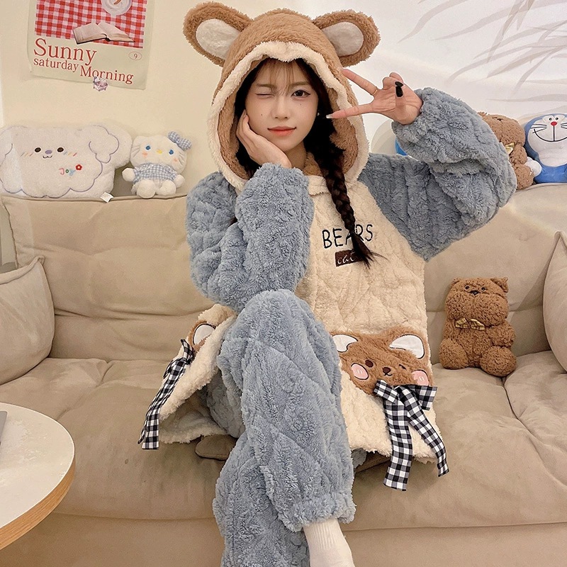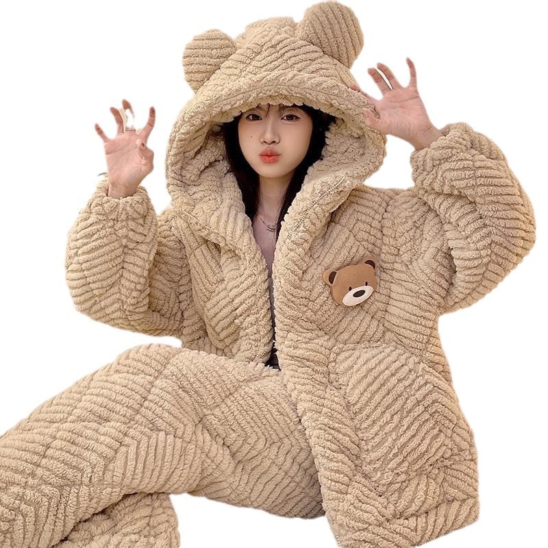 パジャマ ホームウェアスリープウェア 女性 秋と冬 ホームウェアセット パジャマ