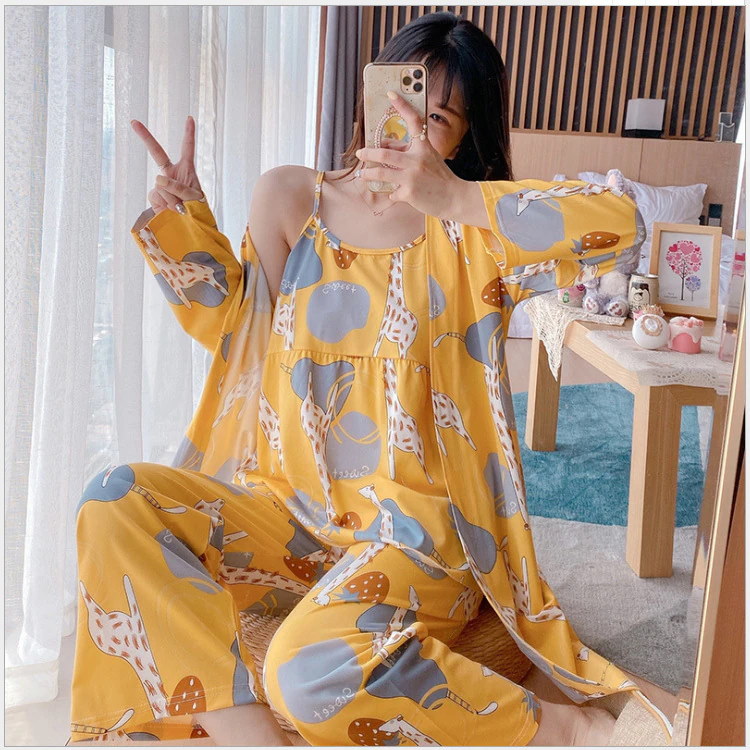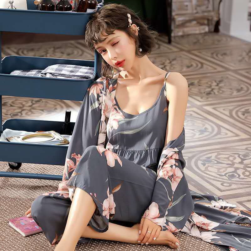 無料 シアーシャツ韓国 新作 三点セット日式 キュートルームウェア キャミソール 長袖 夏服 花柄ルームウェア レディース ナイトウェア セットアップ