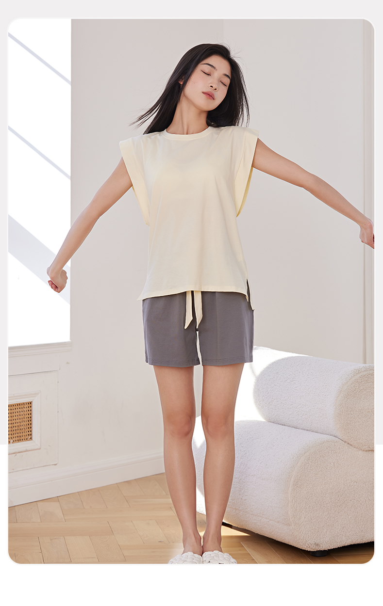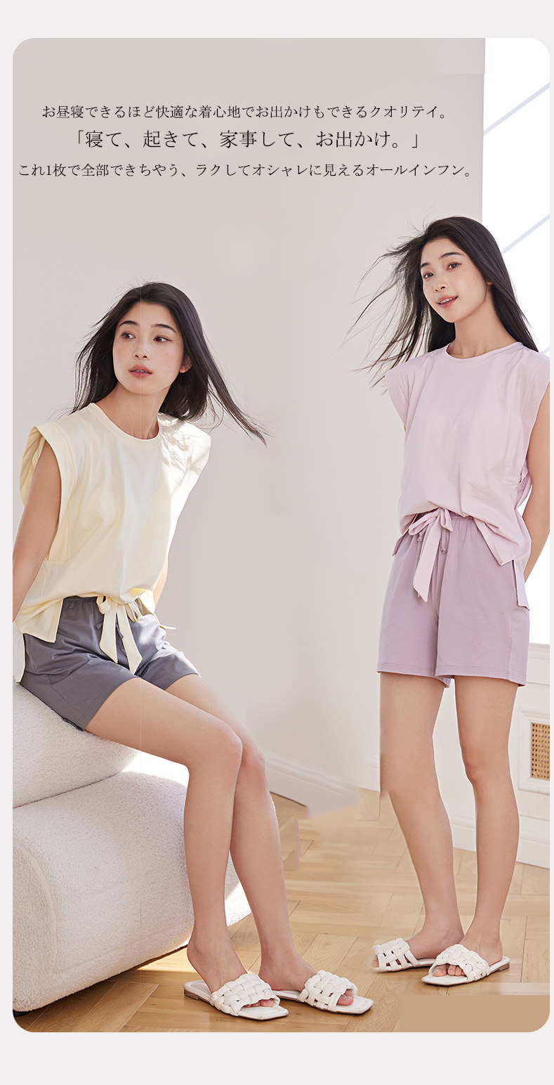 ゆったり カップ付き ルームウェア パジャマ 涼しい レディース 薄手 ルーズ パッド付き ゆったり 大きいサイズ 半袖 Tシャツ 長丈 パンツ 快適 伸縮性 通気性 ソフト 柔らか 部屋着 ねまき