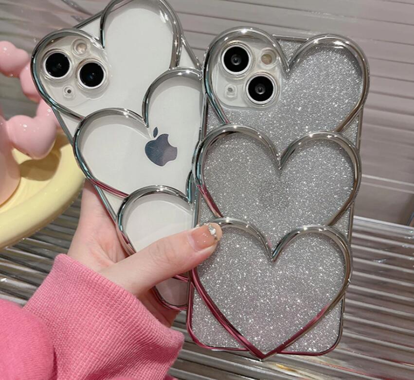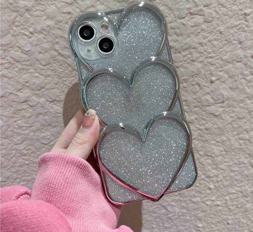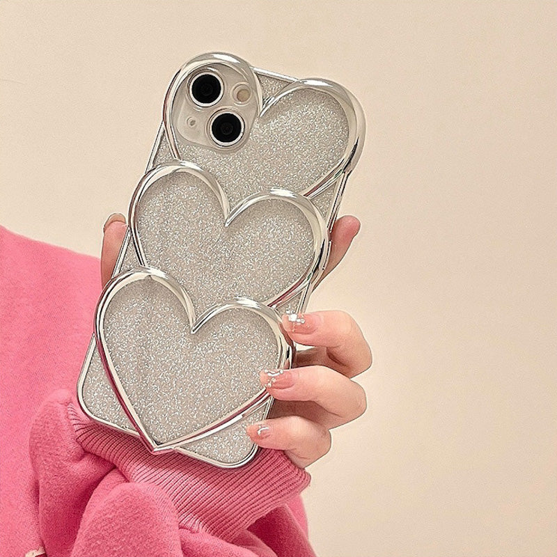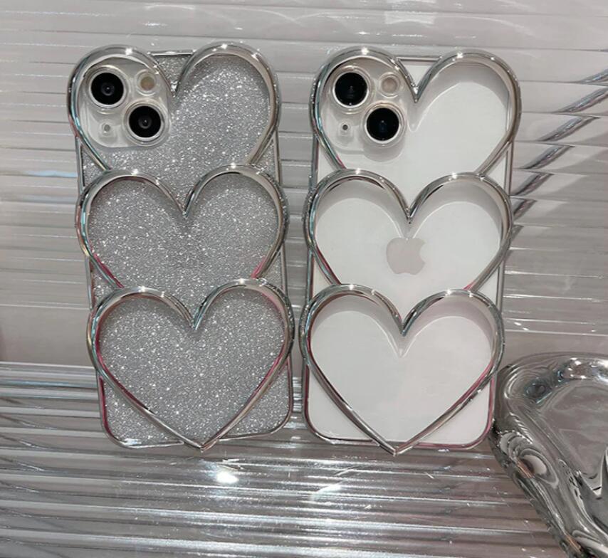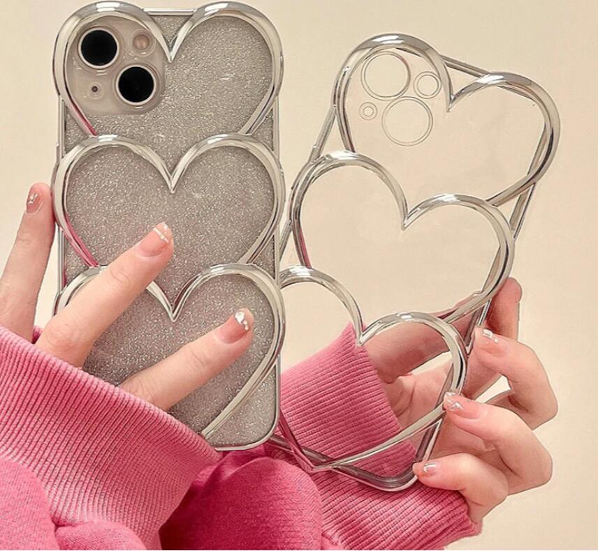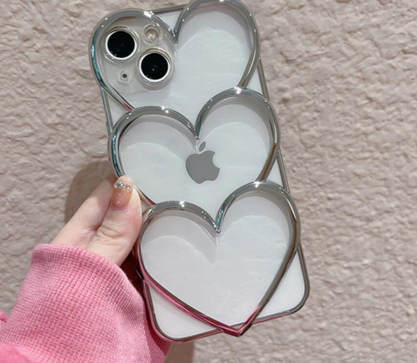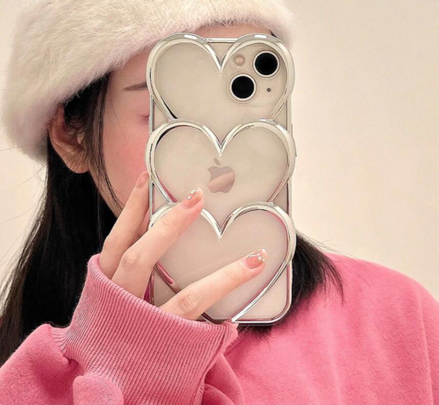 シルバートリプルハート携帯ケース インス 風 ミニマリスト iPhone 15 Pro