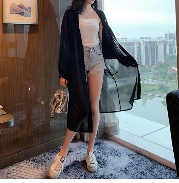 シアーシャツ 日焼け対策 冷房対策 羽織 透け感 レディース 日焼け止め シフォン ブラウス 長袖 トップス ロングシャツ 前開きシャツ 重ね着 オーバーサイズ シースルー シンプル 夏物 春 夏