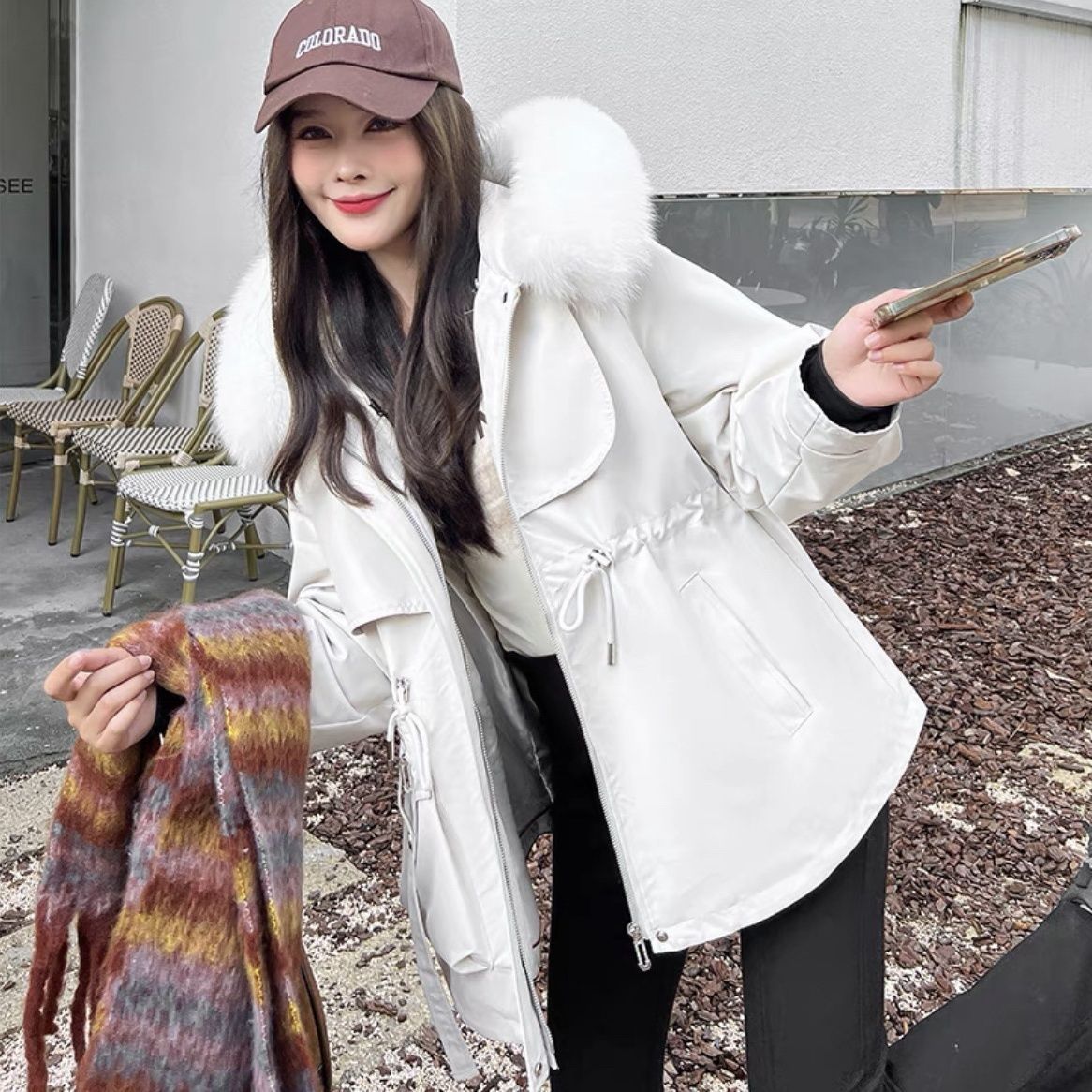 韓国 秋冬アウター ダウンジャケット ファーコートショートフード付き ダウン ジャケット暖かいウエスト引き締めコート厚手 裹起毛キルティング 通勤大きいサイズレディースファッション